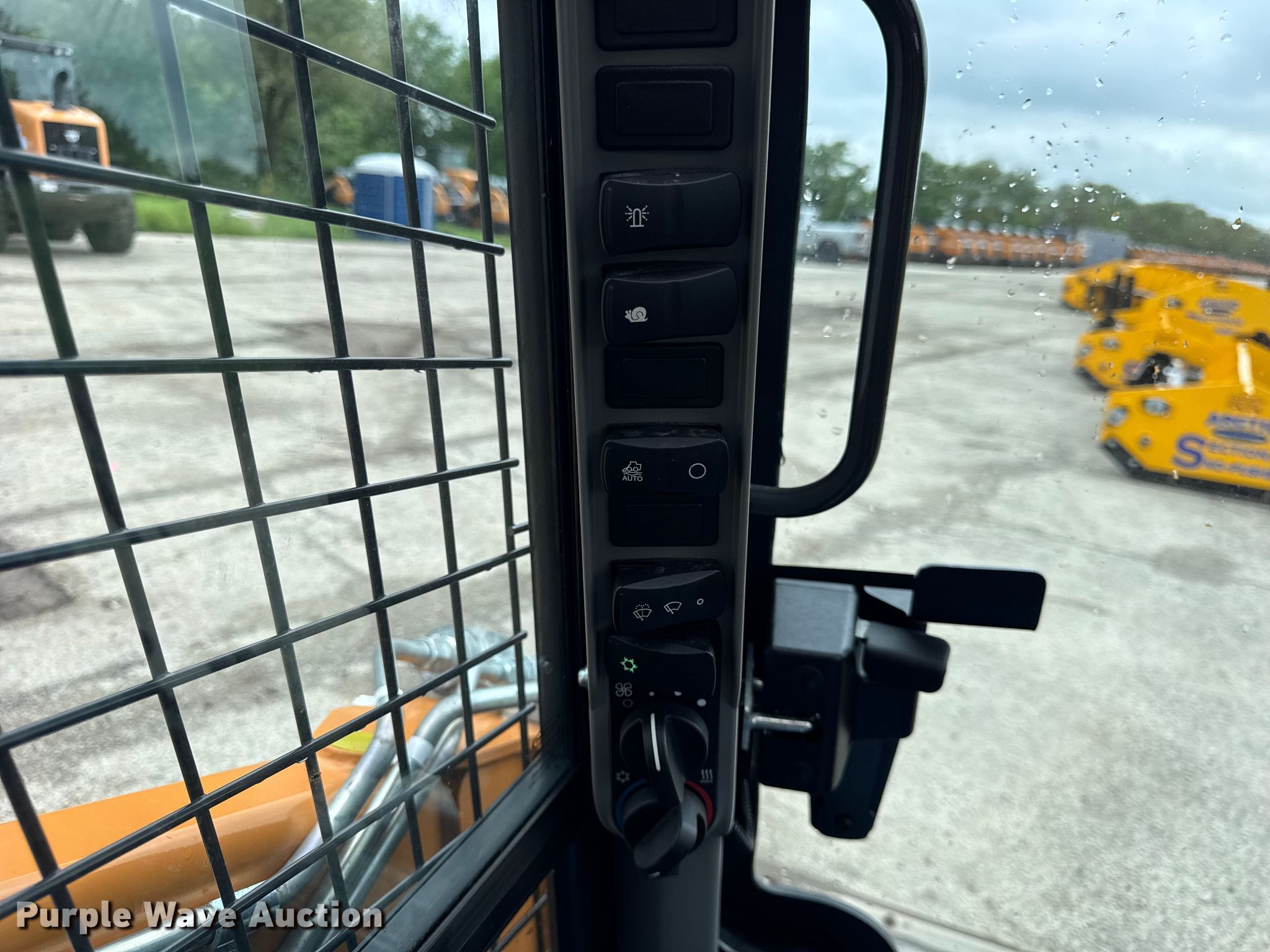 2023 Case SV280B skid steer loader. Hours: 57 on meter, Serial: JAFSV280TNM418077, Unit #: 23516. Engine FPT F5HFL463A*G, Displacement: 3.4L, Cylinders: 4, Fuel type: Diesel, HP: 74. Transmission Hydrostatic, Two speed travel. Operators station Enclosed cab, AC, Heat, Backup camera, Bucket control: Hand, Pattern changer, Electronic Monitoring System panel. Features Auxiliary hydraulics, Auxiliary electrical outlet, Quick coupler: Hydraulic, Bucket CNH, Width: 72", Cutting edge: Bolt-on. Tires Size: 12-16.5. MCO documents available upon request from [email protected]. Equipment Management Auction. Frankfort, IL 60423