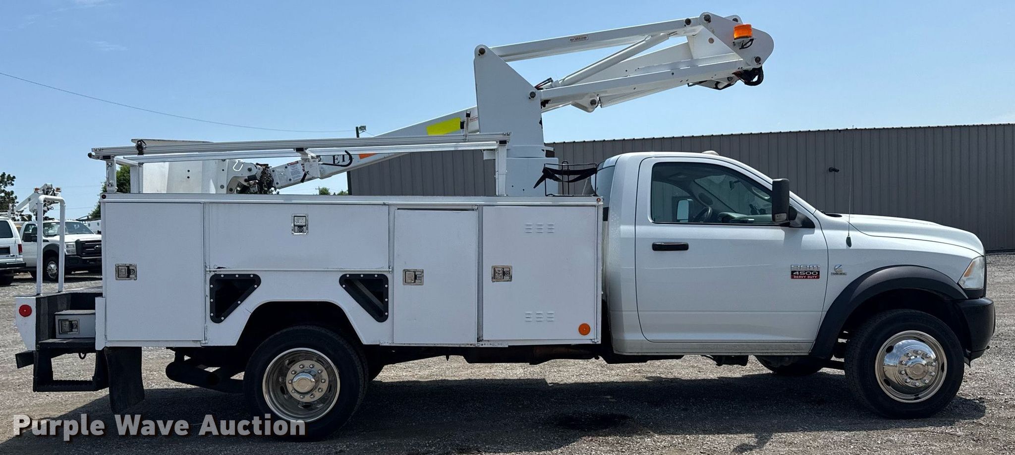 Purple Wave is selling a used Bucket Truck in Oklahoma. This item is a 2012 Dodge Ram 4500HD bucket truck with the following: Miles: 216,429 on odometer, VIN: 3C7WDKBL2CG268553