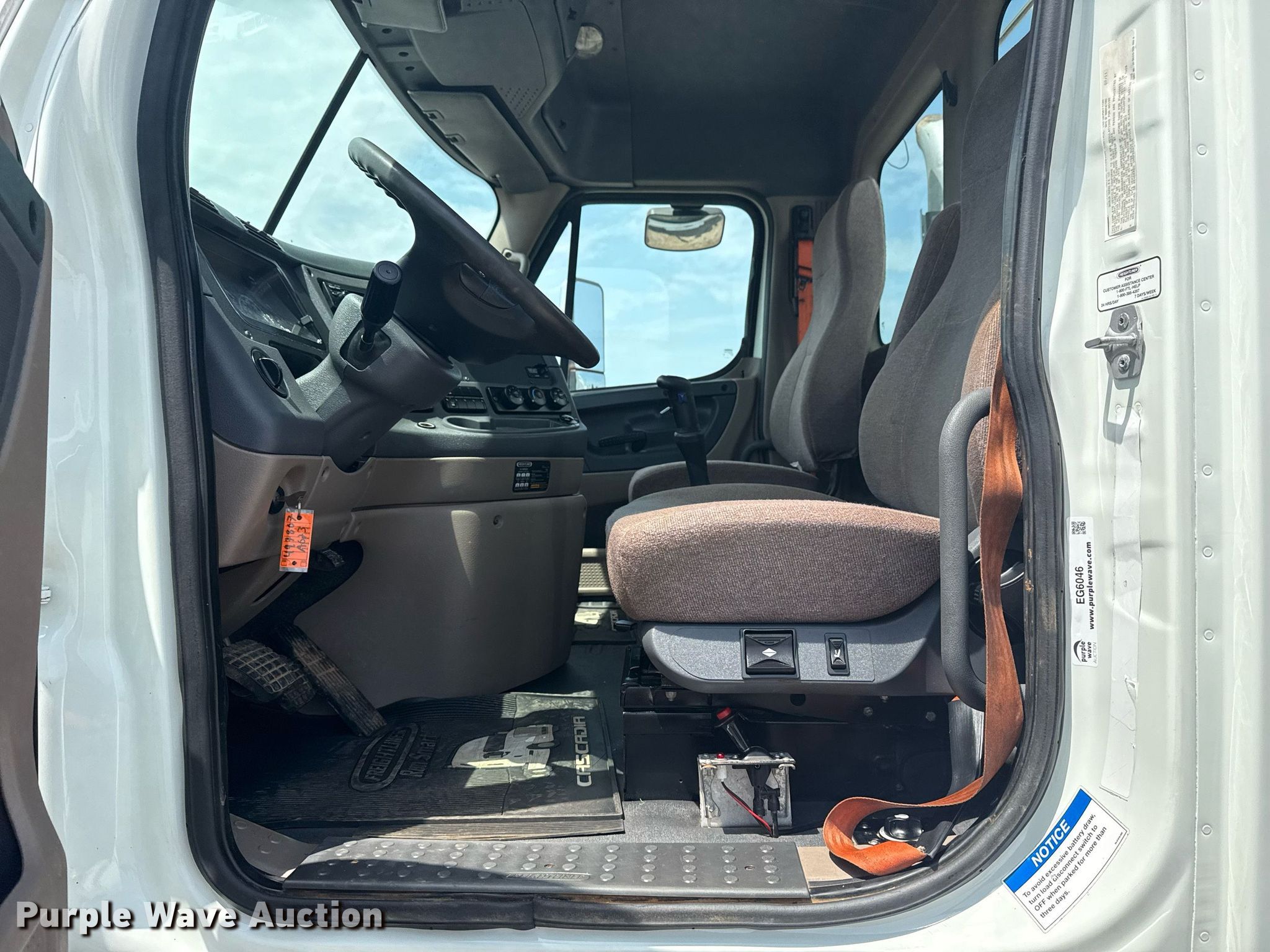 2012 Freightliner Cascadia vacuum truck. Miles: 614,881 on odometer, Hours: 16,686 on meter, VIN: 1FUBGADV6CLBJ9864. Engine Detroit Diesel DD13, Displacement: 12.8L, Cylinders: 6, Fuel type: Diesel. Transmission Manual, Speed: 10. Chassis Axles: Single, Suspension: Air Dump valves, Brakes: Air, PTO. Interior AC, Heat, Heated mirrors, Power windows, Cruise control. Features Bed Tank bed, Length: 11', Width: 91", Capacity: 2,100 gallons, Top hatches: 1, Rear outlet: 5", Vacuum pump NVE. Tires Size: 11R22.5. Notes Dash warning indicator: ABS. Oklahoma title. Seller is an Oklahoma licensed motor vehicle dealer. Buyers may be required to provide identification to the licensed dealer to comply with state laws. Title will be assigned and distributed by the dealer. Please contact the seller for distribution questions. Title distribution may be delayed up to 30 days from verification of funds. Collinsville, OK 74021