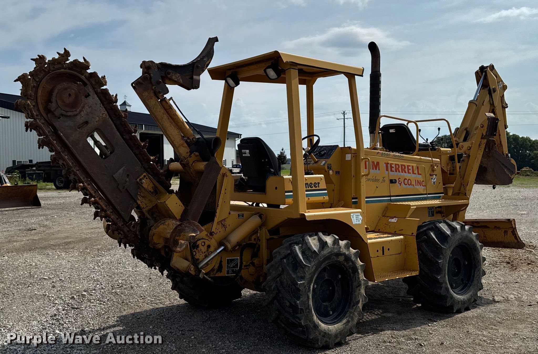1997 Vermeer V8550 trencher. Hours: 48 on meter Actual hours unknown, Serial: 1VRK11247V1000798. Engine Cummins 4BT3.9-C, Displacement: 3.9L, Cylinders: 4, Fuel type: Diesel. Transmission Hydrostatic. Chassis Four wheel drive, Differential lock, Four wheel steer. Operators station Canopy. Features Trencher Model: VH1850, Estimated dig depth: 68", Cutting width: 4", Teeth: Rock, Hydraulic crumber, Backhoe Model: V9300, Bucket width: 18", Backfill blade Width: 80". Tires Size: 38x18-20. Tim Terrell and Company Inc. Swisher, IA 52338
