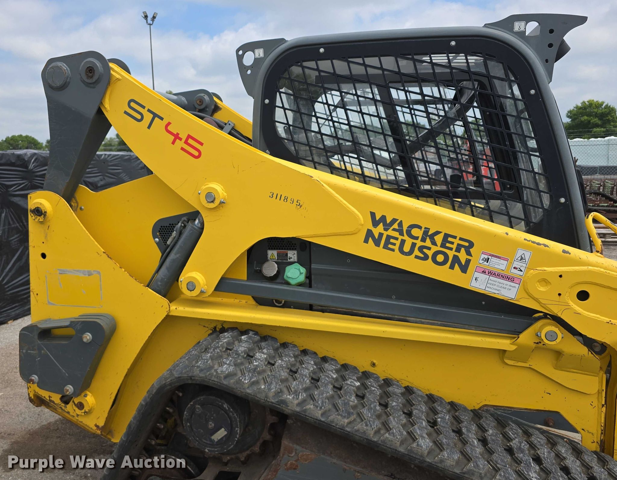Purple Wave is selling a used Tracked Skid Steer Loader in Nebraska. This item is a 2015 Wacker Neuson ST45 tracked skid steer loader with the following: Hours: 1,427 on meter, Serial: WNCS0404HPUM00536, Unit #: 311895