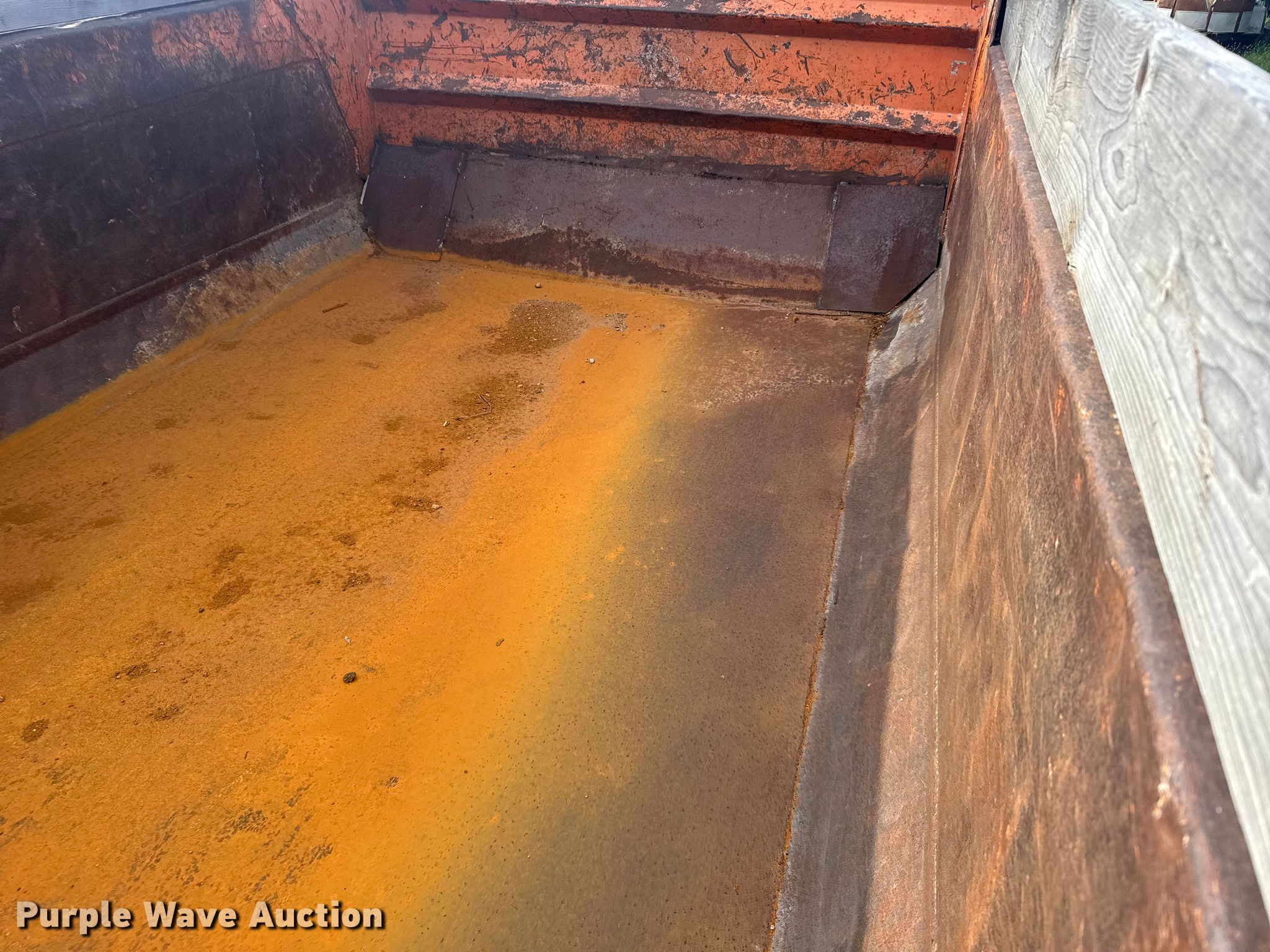 1997 International 2674 dump truck. Miles: 130,576 on odometer, Hours: 10,550 on meter, VIN: 1HTGLAUTOVH418635. Engine Displacement: 10.0L, Cylinders: 6, Fuel type: Diesel. Transmission Automatic. Chassis Axles: Triple, Pusher axle, Differential lock: Inter-axle, Suspension: Spring over walking beam, Brakes: Air, GVWR: 58,000 lbs, Wheelbase: 214". Interior Heat. Features Bed Dump bed, Length: 14', Width: 96", Side height: 32", Side board height: 10", Bed type: Steel, Ram: Single, End gate: Manual. Tires Front: 385/65R22.5, Rear: 11R22.5, Lift axle: 10.00R15. Nebraska title. Title distribution may be delayed up to 14 days from verification of funds. Kramer Ranch. Stapleton, NE 69163