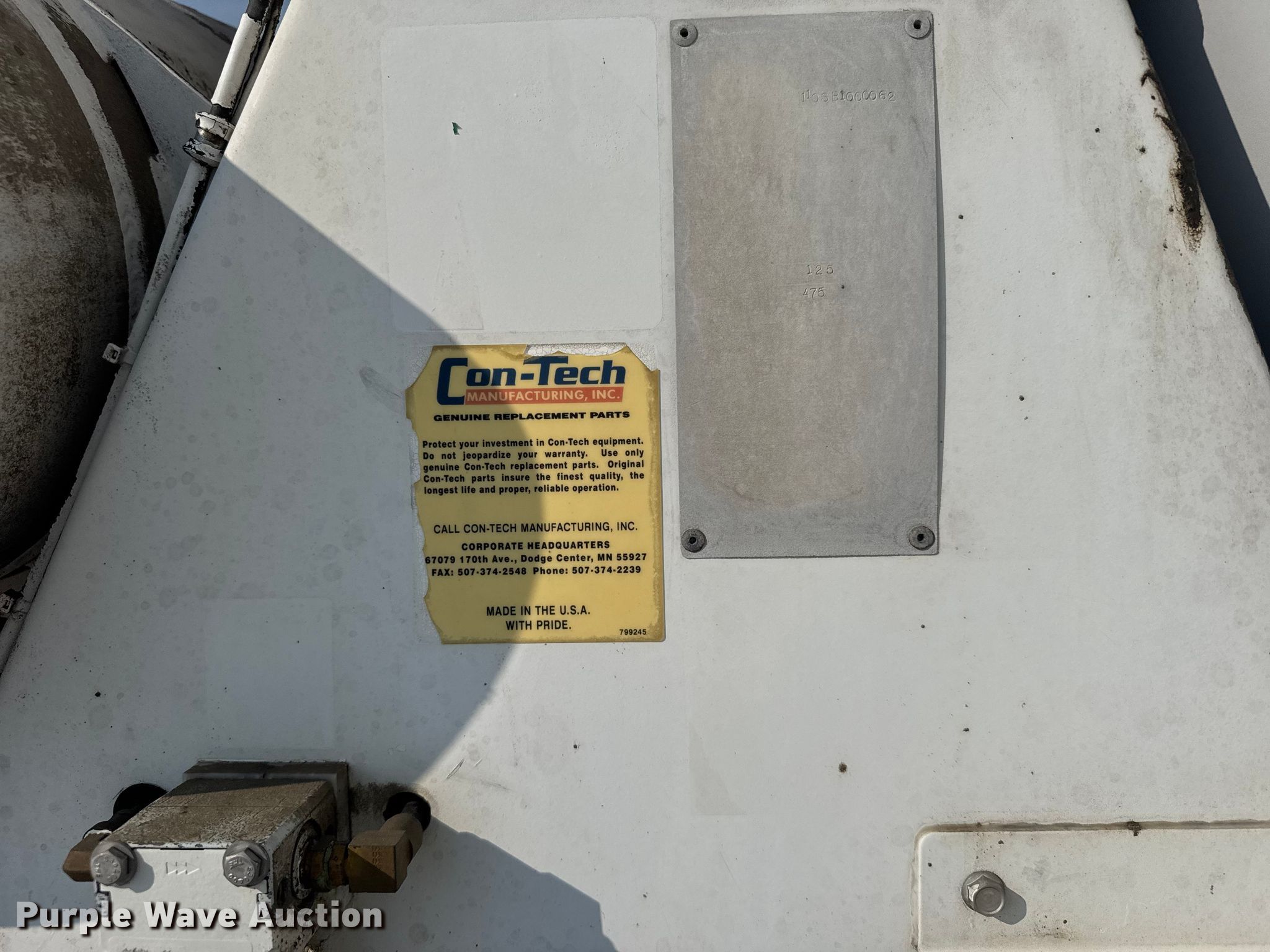 2010 Peterbilt 365 ready mix truck. Miles: 162,661 on odometer, Hours: 18,540 on meter, VIN: 1NPSX0EX7AD795609, Unit #: MT0216. Engine Cummins, Displacement: 10.8L, Cylinders: 6, Fuel type: Diesel. Transmission Eaton Fuller, Manual, Speed: 8. Chassis Axles: 4, Pusher axle Steerable, Tag axle Steerable, Differential lock: Full, Suspension: Spring over walking beam, Brakes: Air, PTO, GVWR: 77,020 lbs FAWR: 20,000 lbs, IAWR: 23,000 lbs, RAWR: 23,000 lbs, Lift axle GAWR: 11,020 lbs. Interior AC, Heat, Power windows, Cruise control, Backup camera. Features Mixer Con-Tech, Discharge: Rear, In-cab controls, Rear drum controls, Water tank capacity: 125 gallons, Chute Extensions: 3, Chute type: Steel.. Tires Front: 425/65R22.5, Rear: 11R22.5, Lift axle: 255/70R22.5. Notes Dash warning indicator: ABS. Kansas title. Title distribution may be delayed up to 14 days from verification of funds. Midwest Concrete Materials, Inc.. Manhattan, KS 66502
