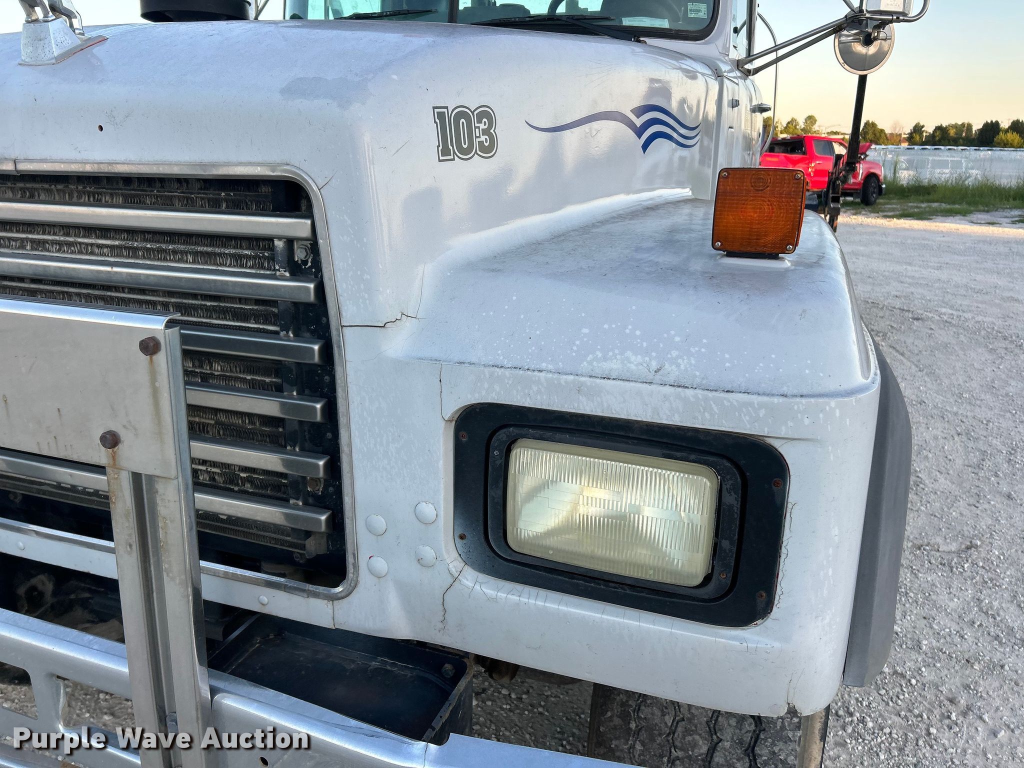 Purple Wave is selling a used Rollback or Tow Truck in Missouri. This item is a 2000 Mack RD688S roll-off container truck with the following: Miles: 672,470 on odometer, Hours: 28,944 on meter, VIN: 1M2P267C6YM052776