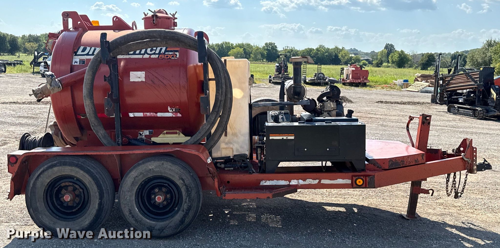 Ditch Witch FX25 vacuum excavator. Hours: Unknown. Engine Briggs & Stratton Vanguard, Cylinders: 2, Fuel type: Gas, HP: 31. Features Spoils tank Capacity: 500 gallons, Water tank Capacity: 80 gallons, Vacuum pump Inlet valve size: 4", Outlet valve size: 6", Suction hose Diameter: 3".. Trailer Ditch Witch, 16' L x 96" W, Ball hitch size: 2 5/16", Suspension: Torsion, Brakes: Electric, Axles: Tandem, Tire size: ST235/80R16. Transfer of ownership documentation will be a bill of sale. Landrun LLC. Inola, OK 74036