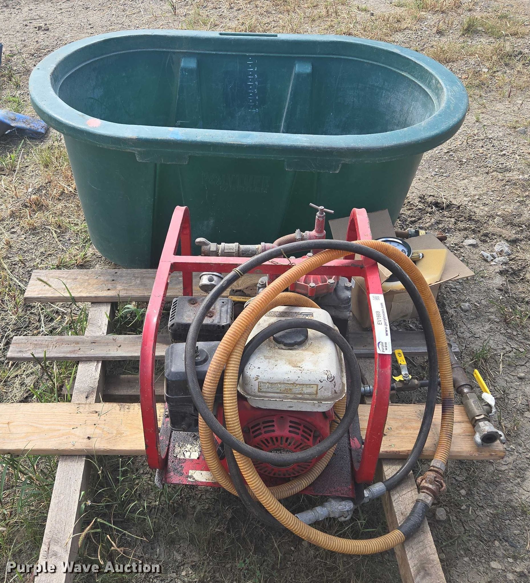 Hydrostatic test pump. Engine. Honda GX160, Cylinders: 1, Fuel type: Gas, HP: 5.5. Notes PSI gauge, Tree valve, Horseman's Equipment trough. Topeka, KS 66618