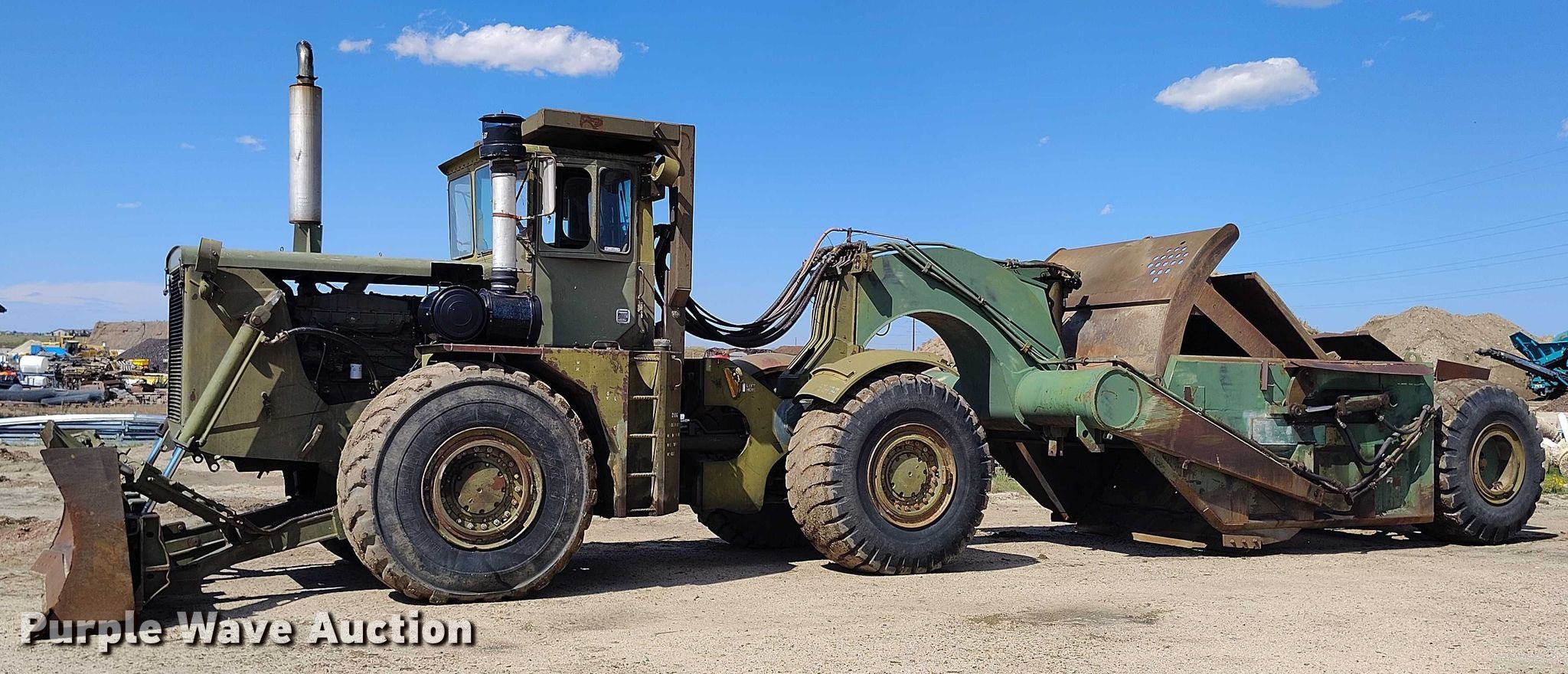 Purple Wave is selling a used Conventional Scraper in Colorado. This item is a Clark 290M scraper with the following: Hours: 6,606 on meter, Hours unknown on second meter