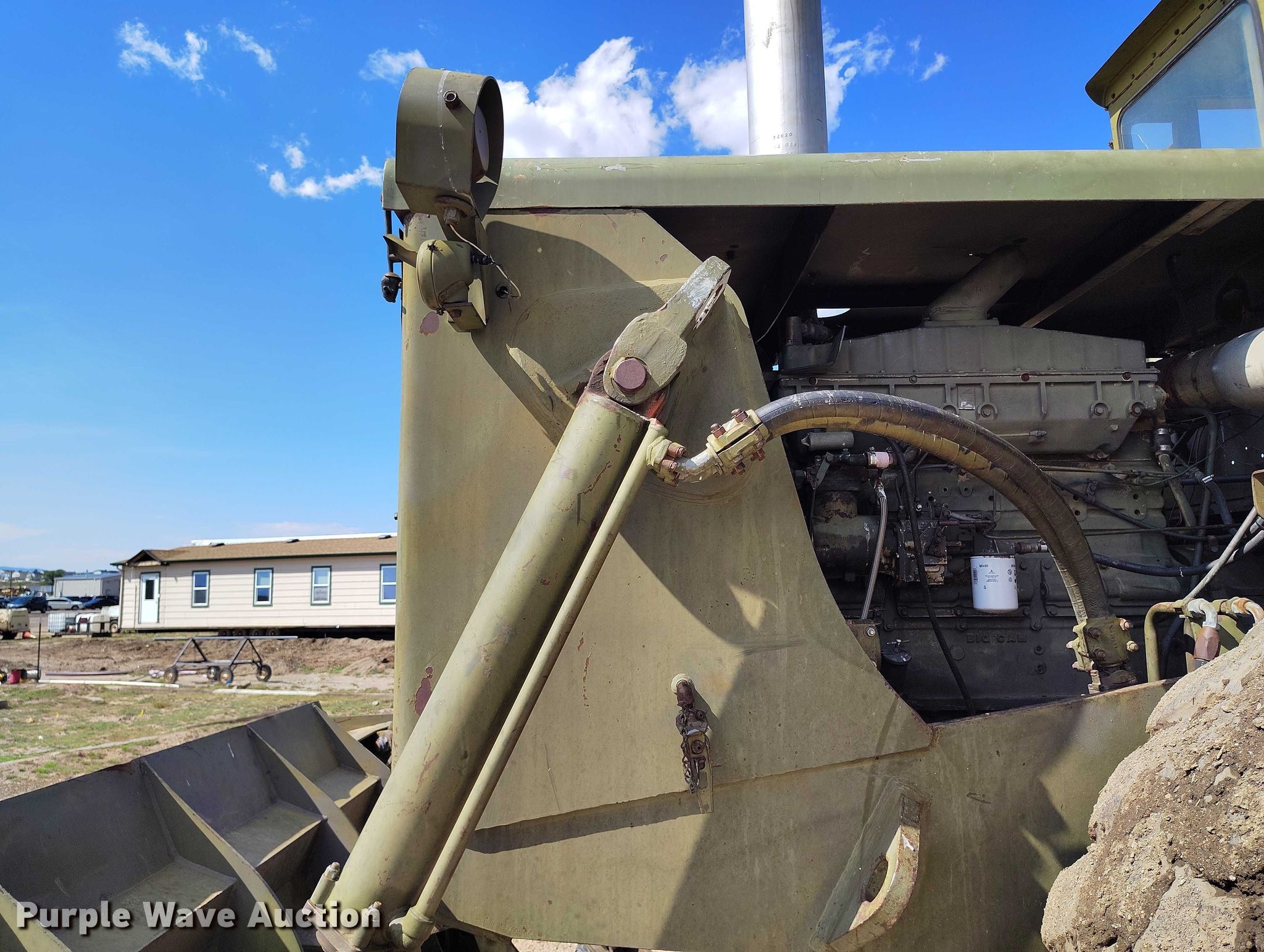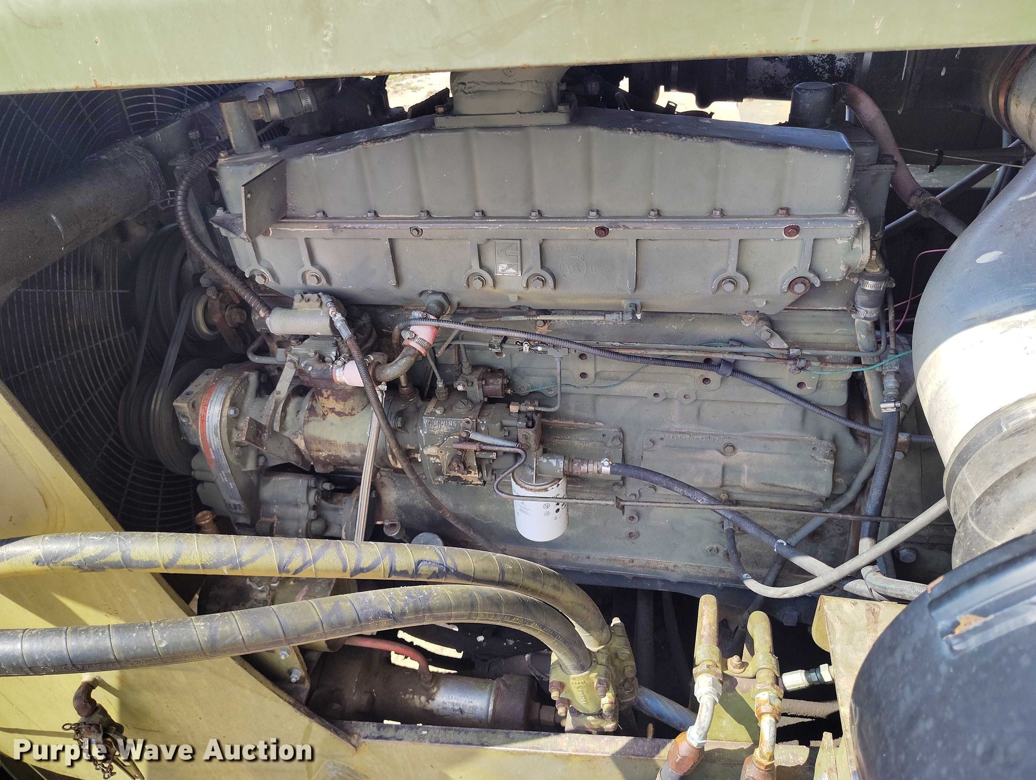 Clark 290M scraper. Hours: 6,606 on meter, Hours unknown on second meter. Engine Cummins NTC400BC3RX, Cylinders: 6, Fuel type: Diesel. Transmission Powershift, 4F - 2R. Chassis Brakes: Air. Operators station Enclosed cab, Heat. Features Hydraulic lift, Scraper controls: Lever controls No. of controls: 3, Rear push block, Dozer blade Blade shape: Semi-U, Dual-tilt, Width: 136". Tires Size: 29.5R29. Notes Glass cracked. Timberline Rock 'n Roll. Colorado Springs, CO 80939