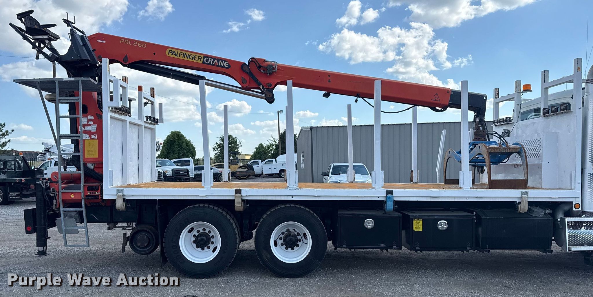 2010 Freightliner Business Class M2 grapple crane truck. Miles: 196,359 on odometer, Hours: 14,872 on meter, VIN: 1FVHC7CV6ADAR4316. Engine Mercedes-Benz OM460LA, Displacement: 12.8L, Cylinders: 6, Fuel type: Diesel, Engine brake. Transmission Eaton Fuller, Manual, Speed: 10. Chassis Hi-rail system, Axles: Tandem, Differential lock: Inter-axle, Suspension: Air, Brakes: Air, PTO. Interior AC, Heat, Heated mirrors, Cruise control. Features Bed Length: 22', Width: 96", Crane 2010 Palfinger PRL260 Serial: 100105899, Boom Telescopic, Knuckle, Boom controls Ground.. Tires Front: 385/65R22.5, Rear: 11R22.5. Notes Windshield chipped or cracked. Oklahoma title. Seller is an Oklahoma licensed motor vehicle dealer. Buyers may be required to provide identification to the licensed dealer to comply with state laws. Title will be assigned and distributed by the dealer. Please contact the seller for distribution questions. Title distribution may be delayed up to 30 days from verification of funds. Collinsville, OK 74021