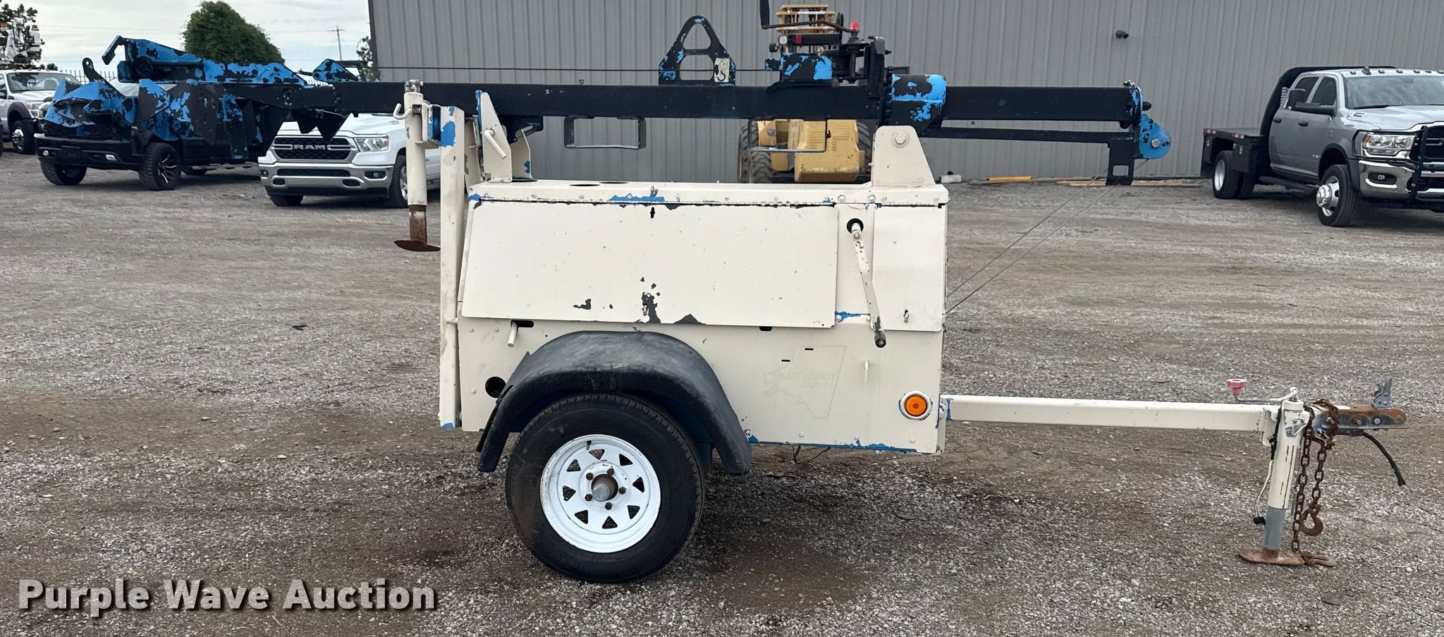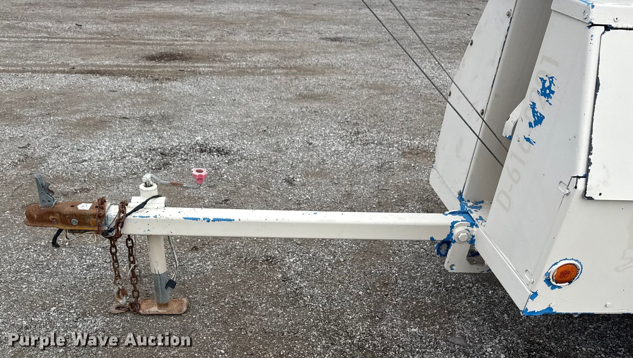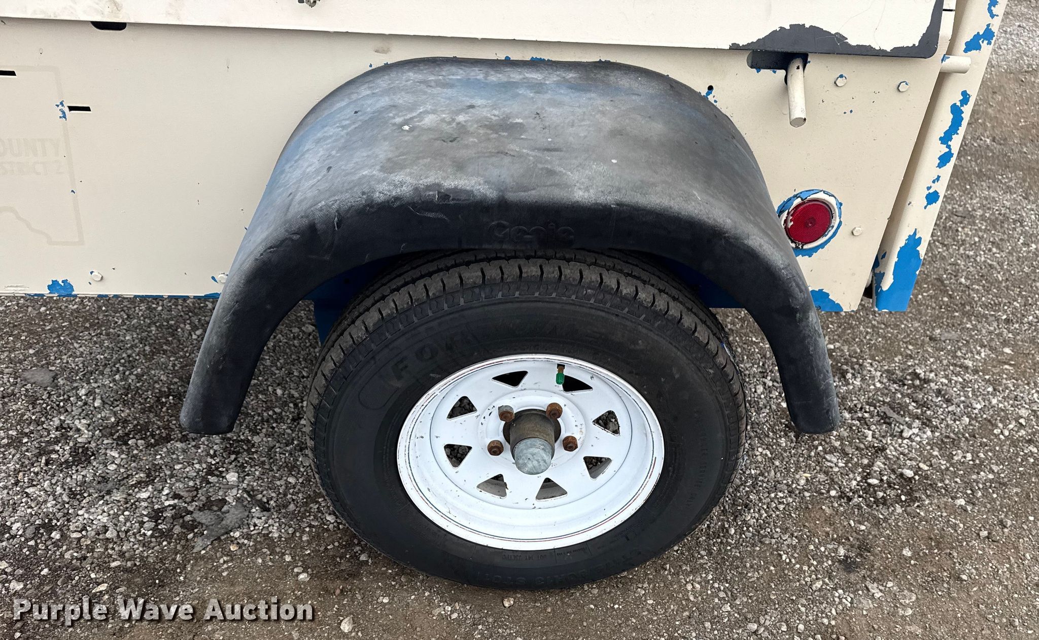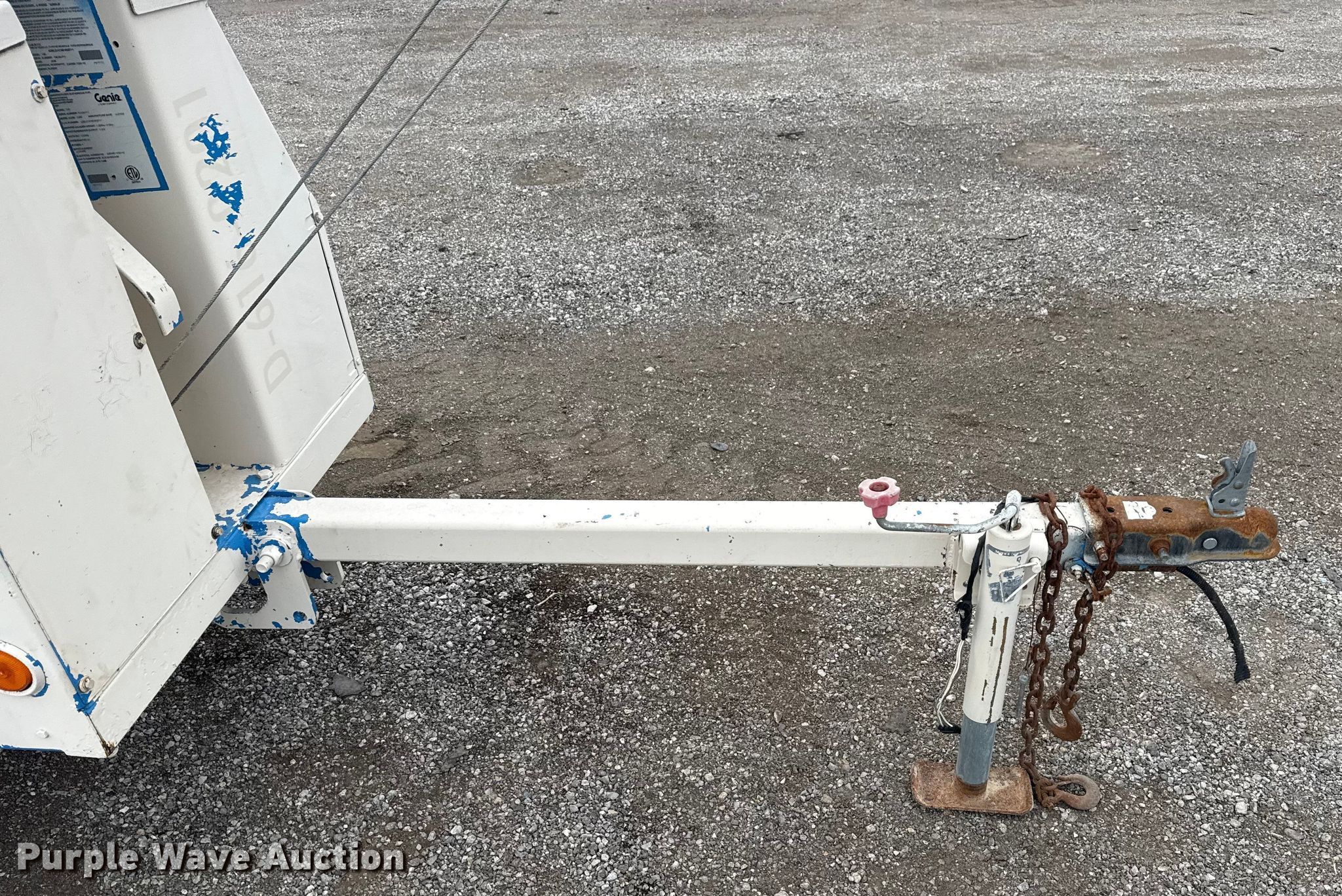 2006 Genie TML light plant. Hours: 2,399 on meter, VIN: 5D8LC14196000711, Serial: TML06-711. Engine Cylinders: 4, Fuel type: Diesel. Features Generator kW: 6, Phase: Single, Electric start, Fuel tank. Trailer 10' L x 55" W, Ball hitch size: 2", Suspension: Spring, Axles: Single, Tire size: ST175/80R13. Notes Dead battery, Non-operational unit. Collinsville, OK 74021