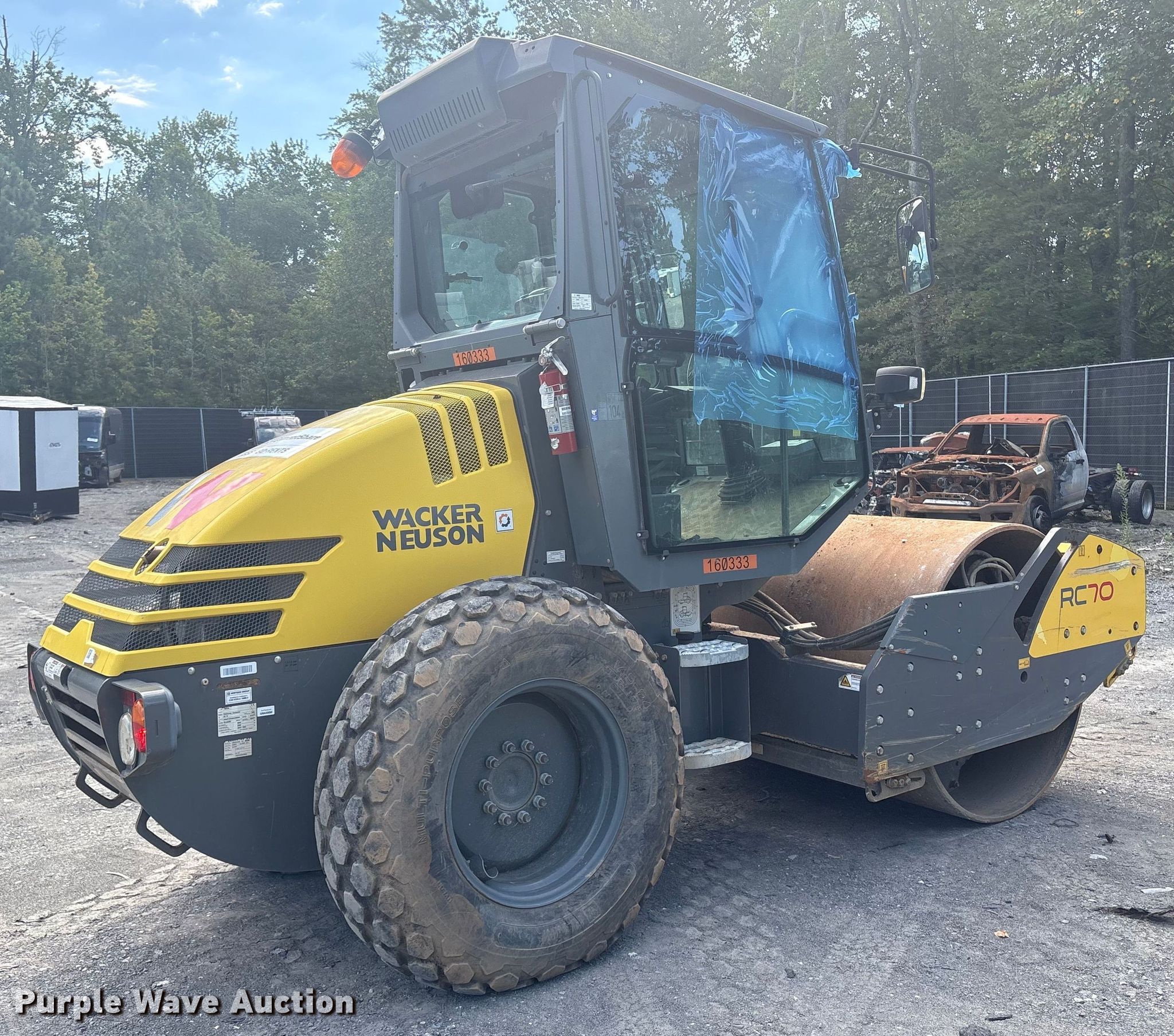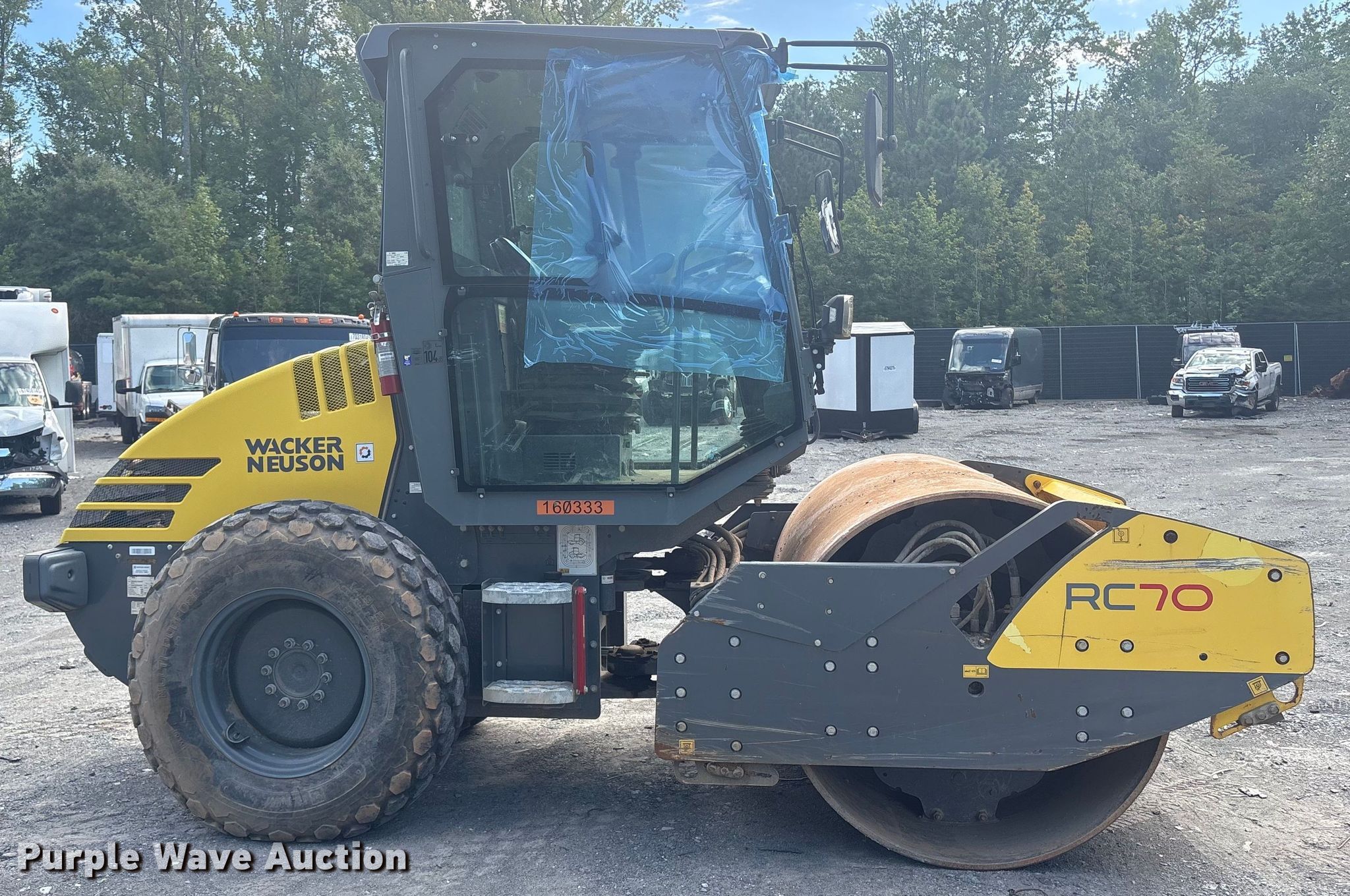 Purple Wave is selling a used Single Drum Roller Compactor in Maryland. This item is a 2021 Wacker Neuson RC70 single drum vibratory roller with the following: Hours: 625 on meter, Serial: WNCR1201AHAA00296, Unit #: 65911415