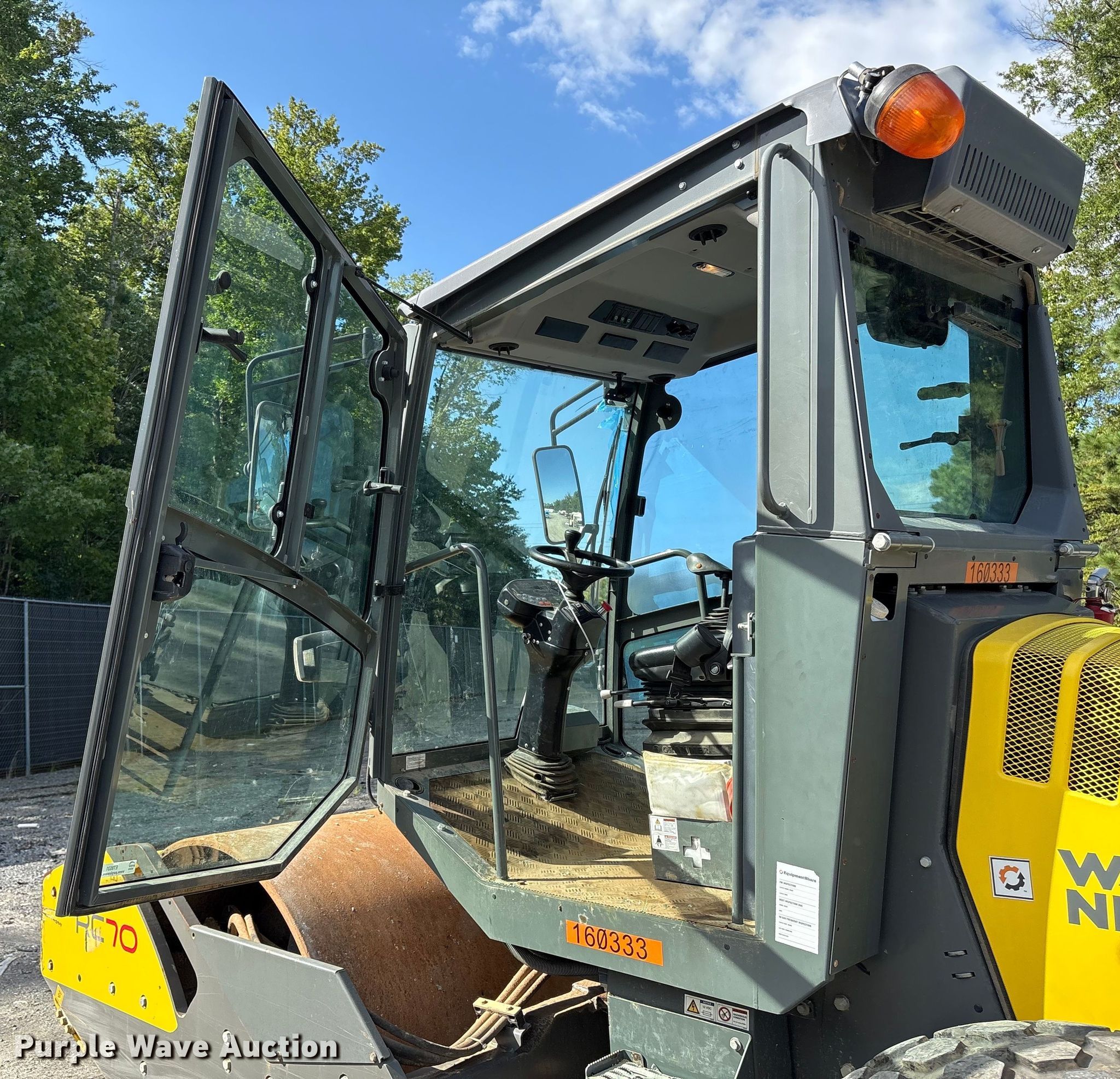 2021 Wacker Neuson RC70 single drum vibratory roller. Hours: 625 on meter, Serial: WNCR1201AHAA00296, Unit #: 65911415. Engine Kubota V3307-CR-T-EW04, Displacement: 3.3L, Cylinders: 4, Fuel type: Diesel. Transmission Hydrostatic, Two speed travel. Operators station Enclosed cab, AC, Heat. Features Drum Drum type: Smooth, Vibratory system: Single, Two speed, Width: 66", Diameter: 48", Drum scrapers. Tires Size: 14.9-24, Steel wheels. Notes Jump start required during on-site data collection, Glass missing. Fleet inventory reduction, stored at a secured facility. Please review REQUIRED REMOVAL INSTRUCTIONS. Dynapac North America. Waldorf, MD 20602