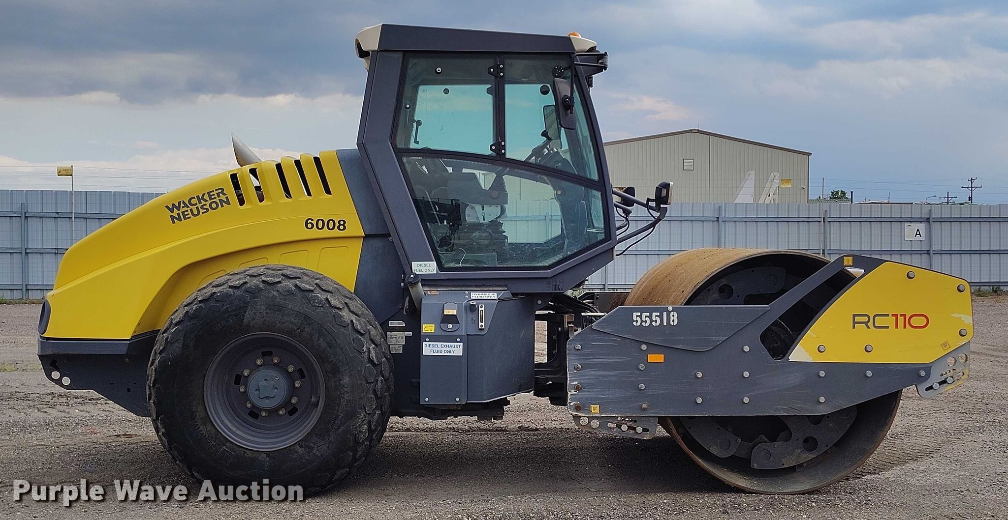 2019 Wacker Neuson RC110 single drum vibratory roller. Hours: 3,950 on meter, Serial: WNCR1101VHAA00288, Unit #: 67817355. Engine Deutz TCD 3.6 L4, Displacement: 3.6L, Cylinders: 4, Fuel type: Diesel. Transmission Hydrostatic. Operators station Enclosed cab, AC, Heat. Features Drum Drum type: Smooth, Vibratory system: Single, Two speed, Width: 86", Diameter: 59". Tires Size: 23.1-6. Construction inventory reduction, stored at a secured facility. Please review REQUIRED REMOVAL INSTRUCTIONS. Dynapac North America. Brighton, CO 80603