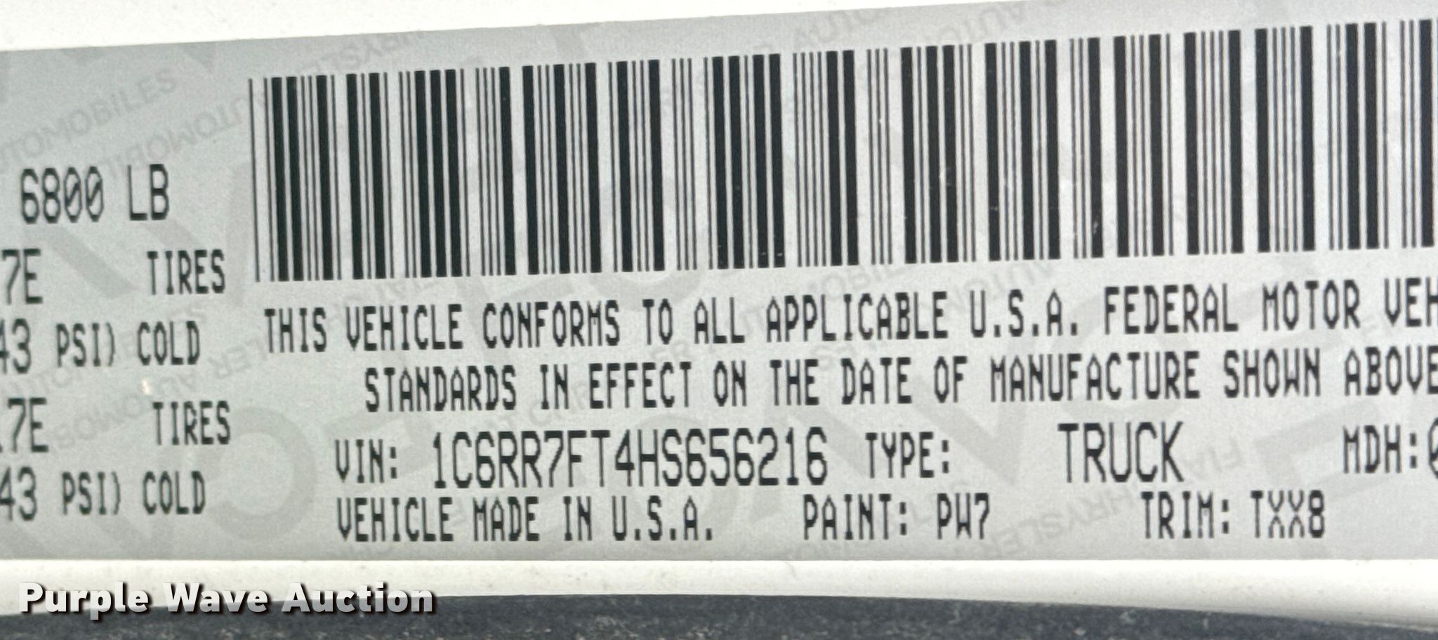 Purple Wave is selling a used 1/2 Ton Pickup or Van in Oklahoma. This item is a 2017 Dodge Ram 1500 Quad Cab pickup truck with the following: Miles: 138,474 on odometer, VIN: 1C6RR7FT4HS656216