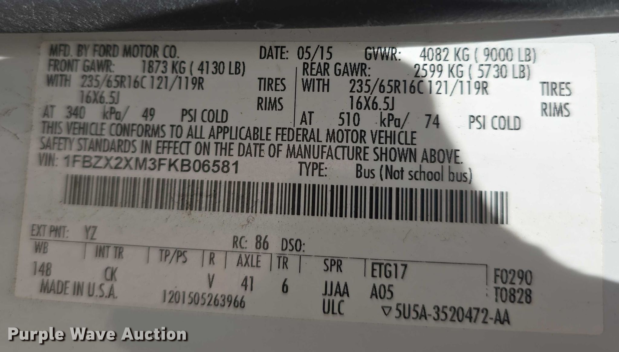2015 Ford Transit 350 XLT handicap accessible van. Miles: 157,289 on odometer, VIN: 1FBZX2XM3FKB06581. Engine Displacement: 3.7L V6 DOHC, Cylinders: 6, Fuel type: Gas. Transmission Automatic. Interior AC, Heat, Power windows, Power locks, Cruise control. Features Braunability wheel chair lift. Tires Size: LT225/75R16. Notes Seats included. Nebraska title. Title distribution may be delayed up to 14 days from verification of funds. City of Lincoln Communications. Lincoln, NE 68508