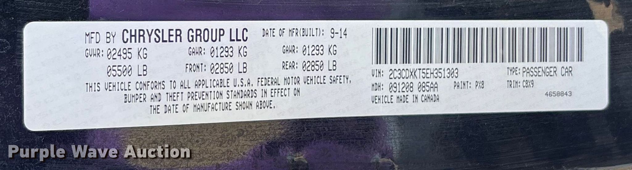 Purple Wave is selling a used Passenger Vehicle in Missouri. This item is a 2014 Dodge Charger Police with the following: Miles: 87,639 on odometer, VIN: 2C3CDXKT5EH351303, Unit #: 67A25