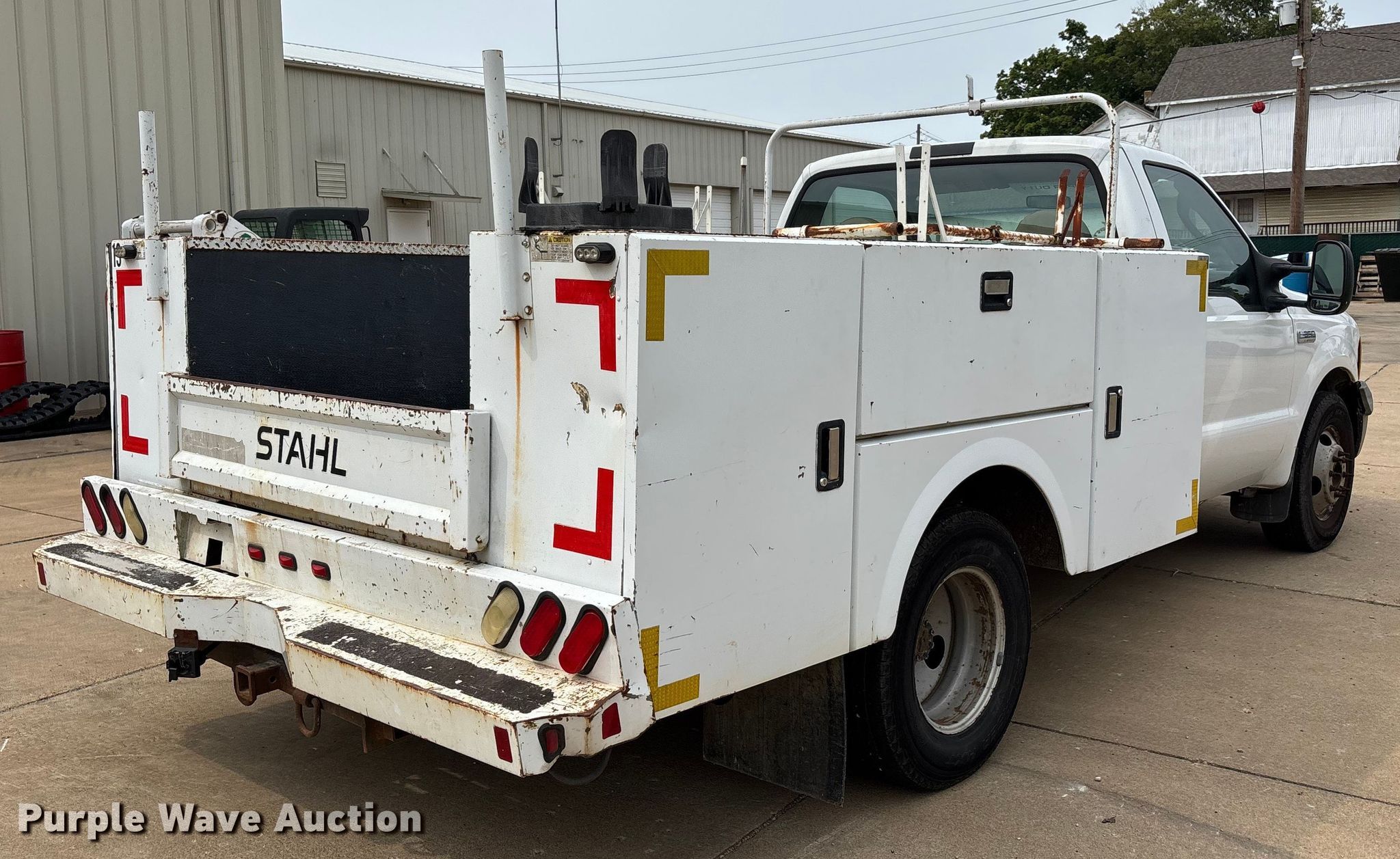 2005 Ford F350 Super Duty utility bed pickup truck. Miles: 52,730 on odometer, VIN: 1FDWF36565EC88321, Unit #: 13. Engine Displacement: 5.4L V8 SOHC, Cylinders: 8, Fuel type: Gas. Transmission Automatic. Interior AC, Heat, Brake controller. Features Bed Utility bed, Stahl, Length: 9' 2", Width: 7' 11". Tires Size: 245/75R17. Notes Hail damage, Utility bed door issues. Missouri title. Title distribution may be delayed up to 14 days from verification of funds. CITY OF FARMINGTON. Farmington, MO 63640