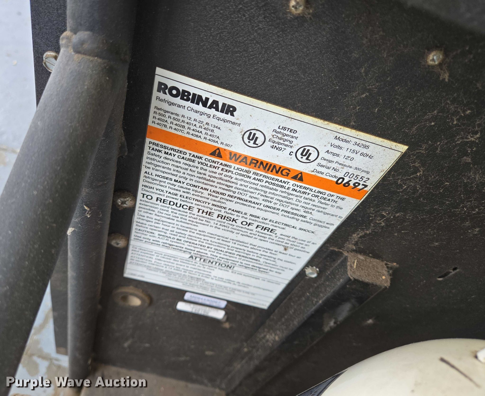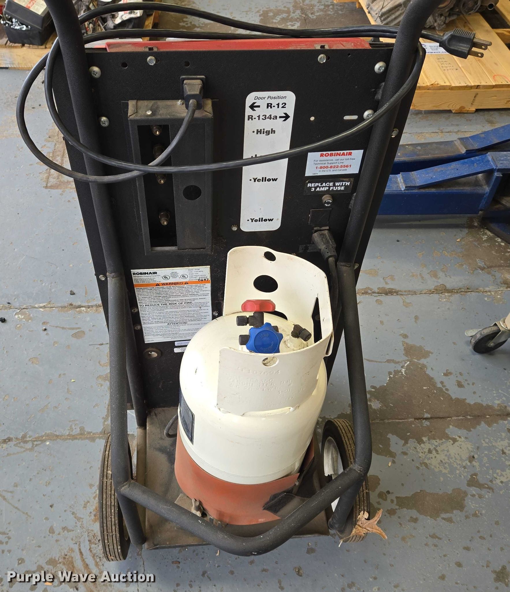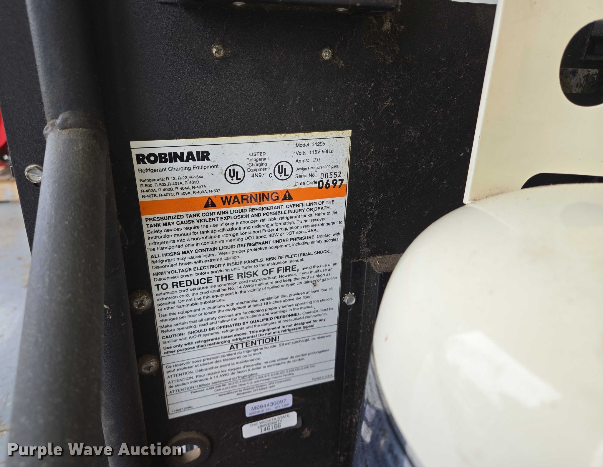 Purple Wave is selling a used Automotive Parts or Acces. in Kansas. This item is a Automotive service equipment with the following: Robinair 81000 VSS fuel/emissions service solution, Serial: 54105, Robinair 34295 AC recycler, Serial: 00552, Volts: 115