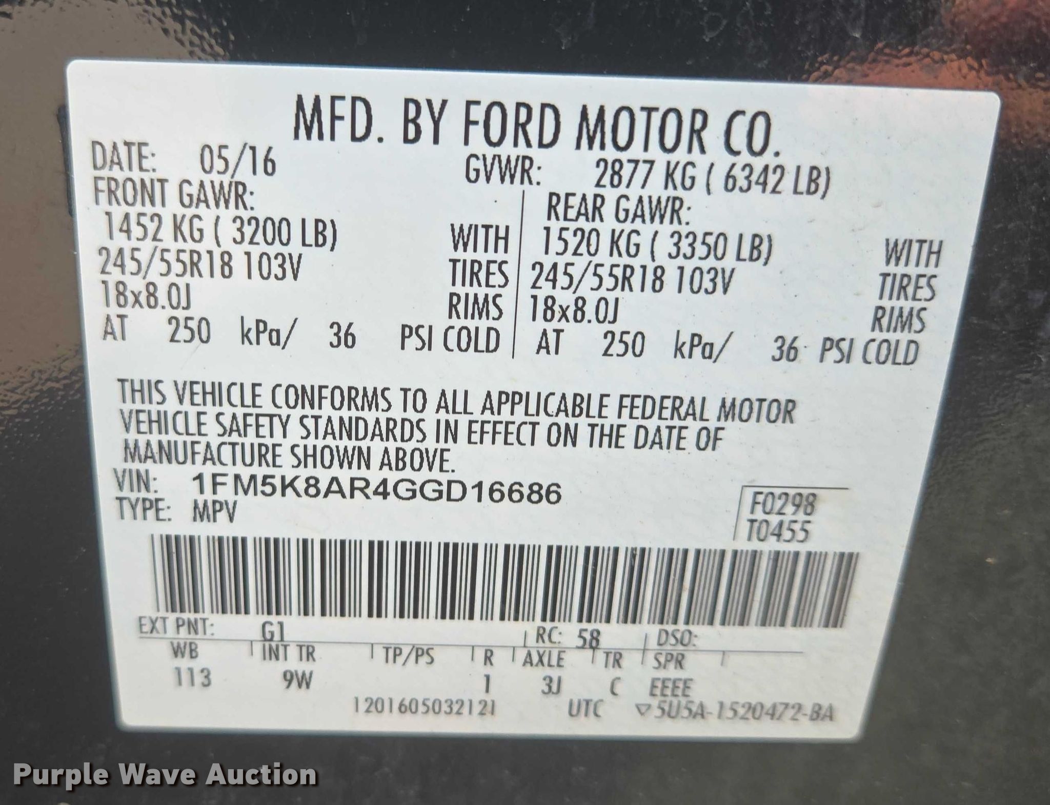 Purple Wave is selling a used Passenger Vehicle in South Dakota. This item is a 2016 Ford Explorer Police Interceptor SUV with the following: Miles: 125,518 on odometer, VIN: 1FM5K8AR4GGD16686, Unit #: 51-29