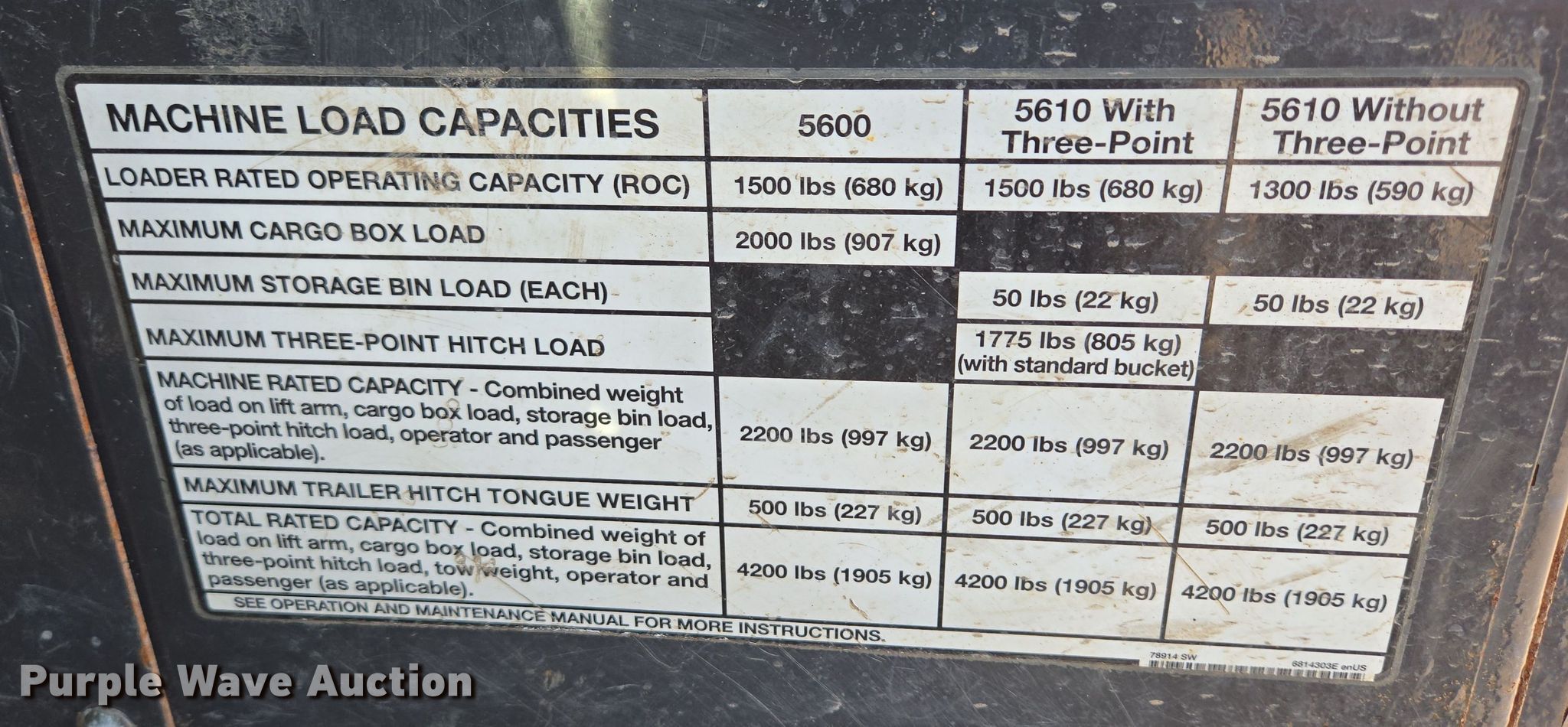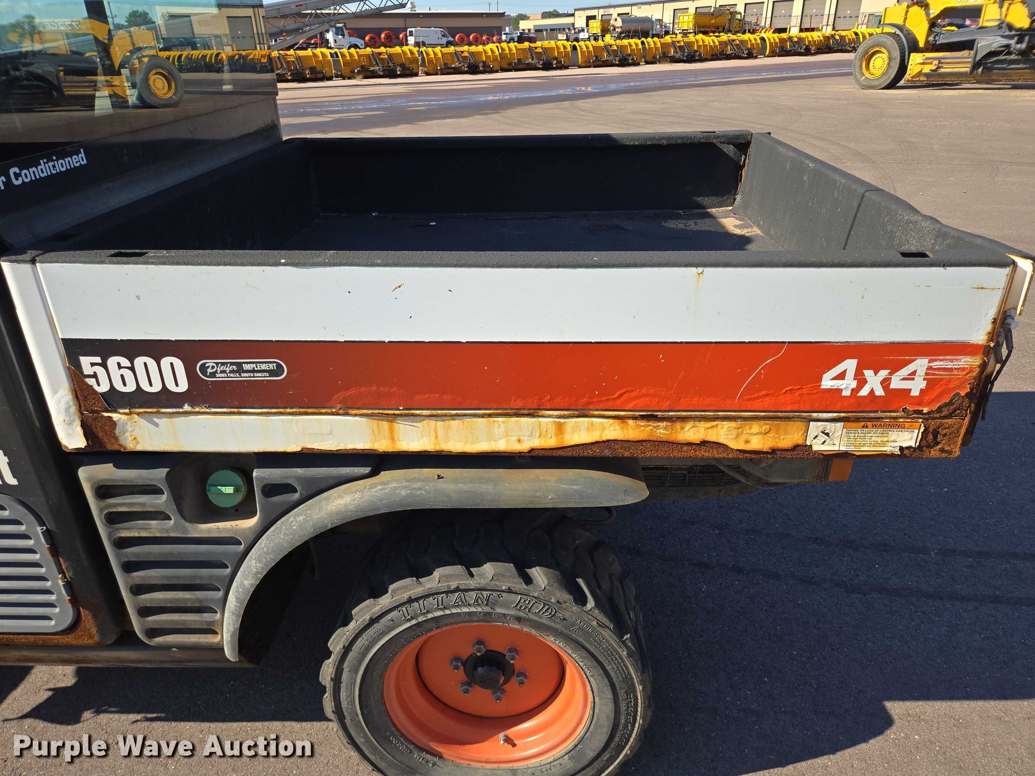 2013 Bobcat 5600 Toolcat utility vehicle. Hours: 3,473 on meter, Serial: A94Y13484, Unit #: 51-11. Engine Cylinders: 4, Fuel type: Diesel. Transmission Automatic. Chassis Four wheel drive/ All wheel drive. Operators station Enclosed cab, AC, Heat. Features Receiver hitch, Dump bed 60" L x 56" W, Dump bed type: Electric/ Hydraulic, Auxiliary hydraulics, Auxiliary electrical outlet, Quick coupler: Hydraulic. Tires Size: 27x10.50-15. Notes Rear tire low, Bed rust damage, Cab rust damage, Floor rust damage. City of Sioux Falls - Open Inspection available September 25, 2025. Sioux Falls, SD 57104