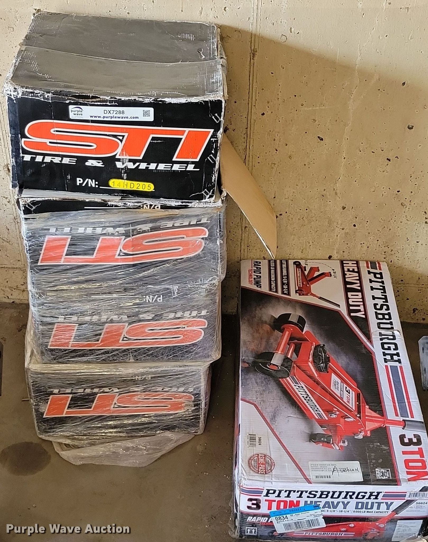 Purple Wave is selling a used Tools in South Dakota. This item is a Tools with the following: (2) STI aluminum wheels, Floor jacks, unused