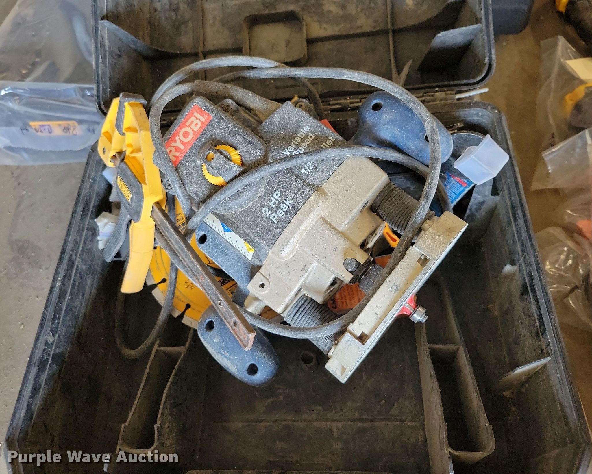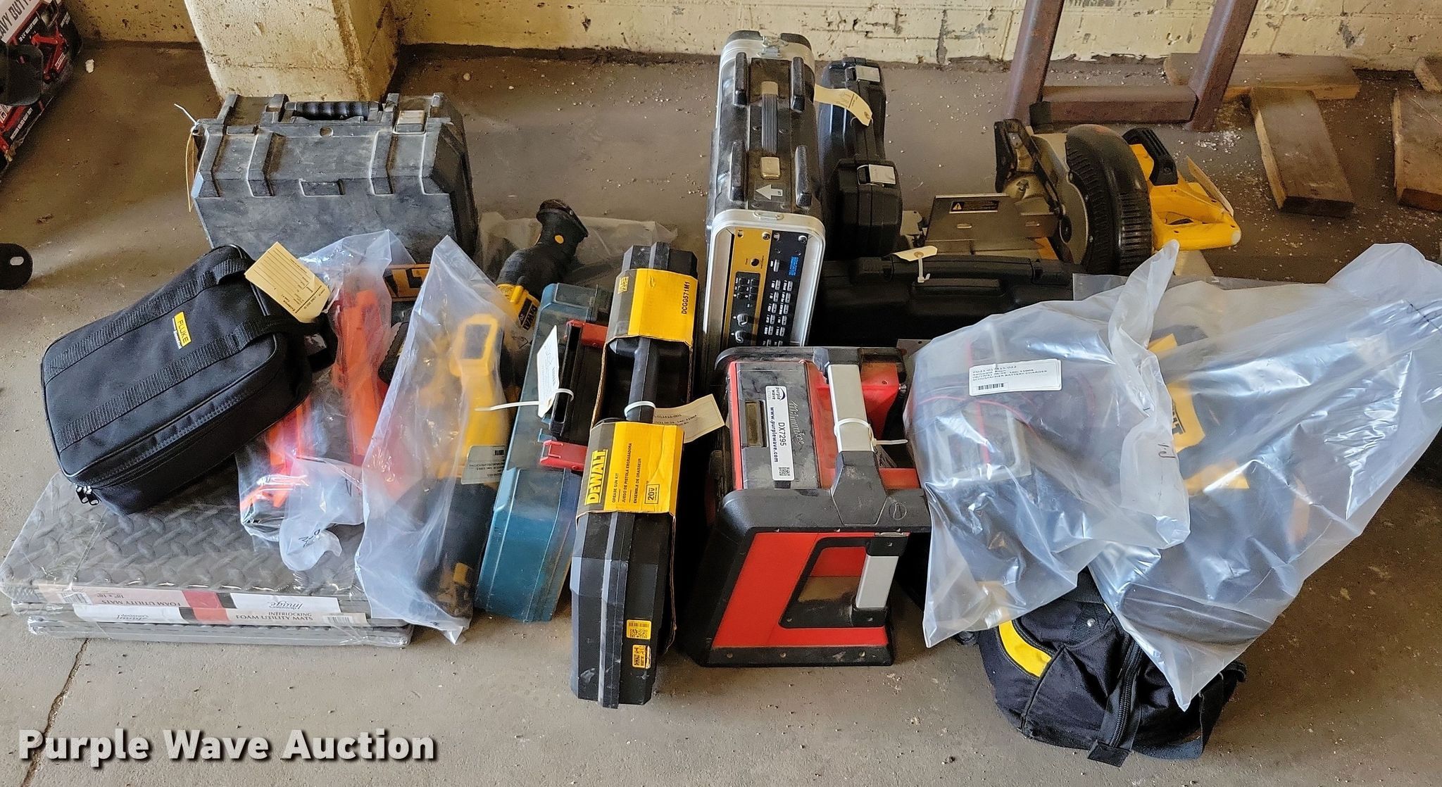 Purple Wave is selling a used Tools in South Dakota. This item is a Tools with the following: Saws, Drills, Router, Grease gun, Radio, Battery charger, Nail gun, Floor mats, Electrical safety analyzer