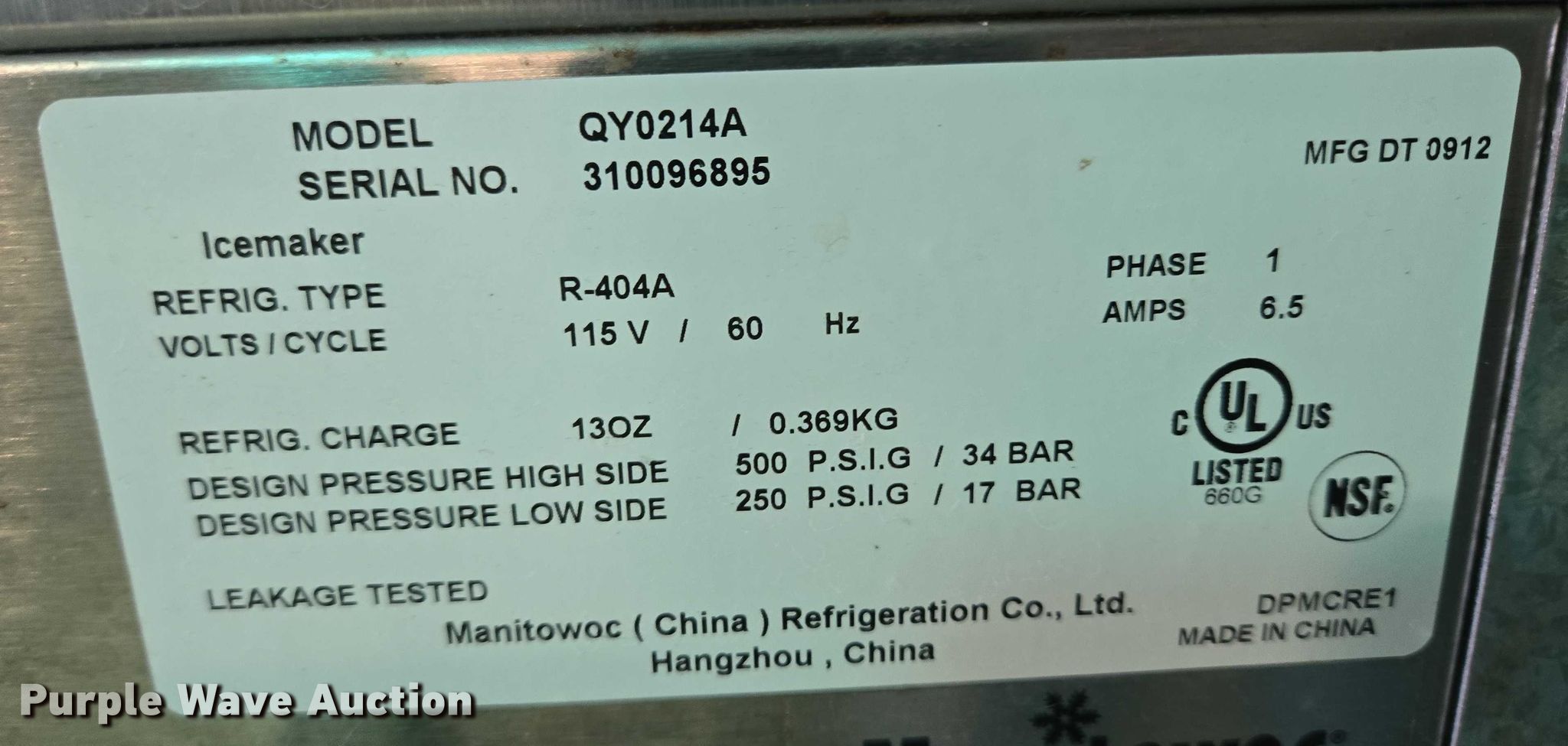 Purple Wave is selling a used Appliances in South Dakota. This item is a Manitowoc QY0214A ice machine with the following: Serial: 310096895, Unit #: 22-30, Volts: 115, Phase: Single
