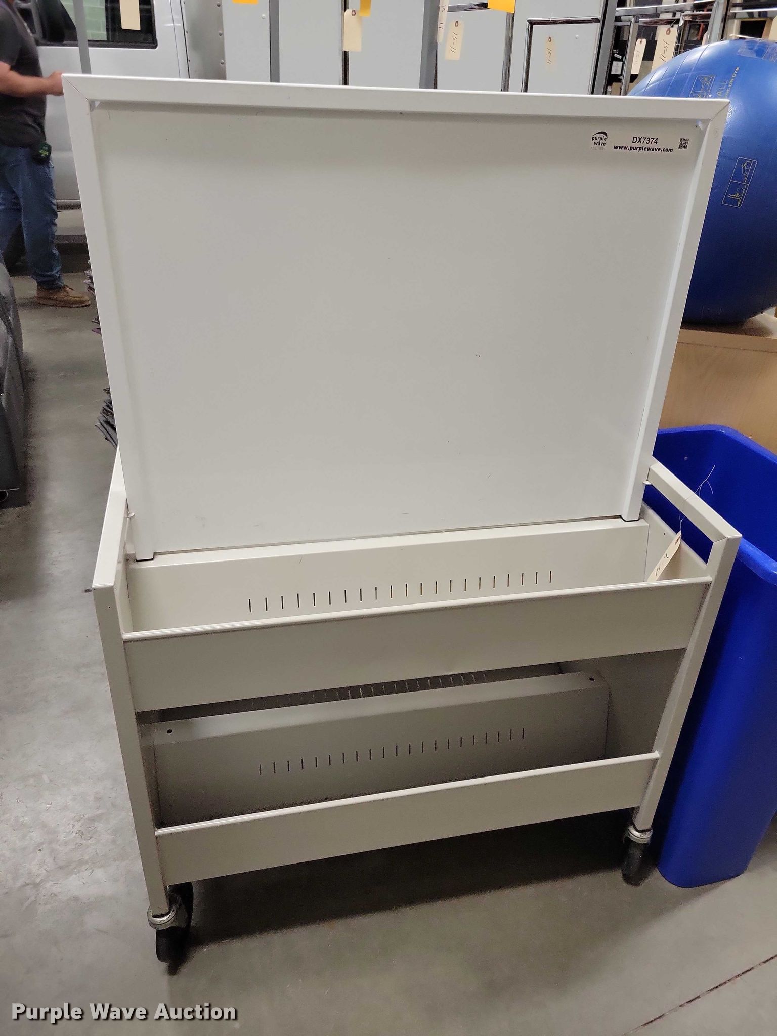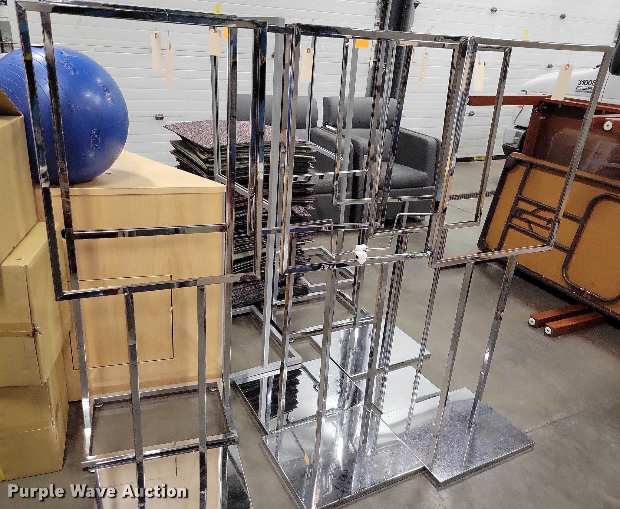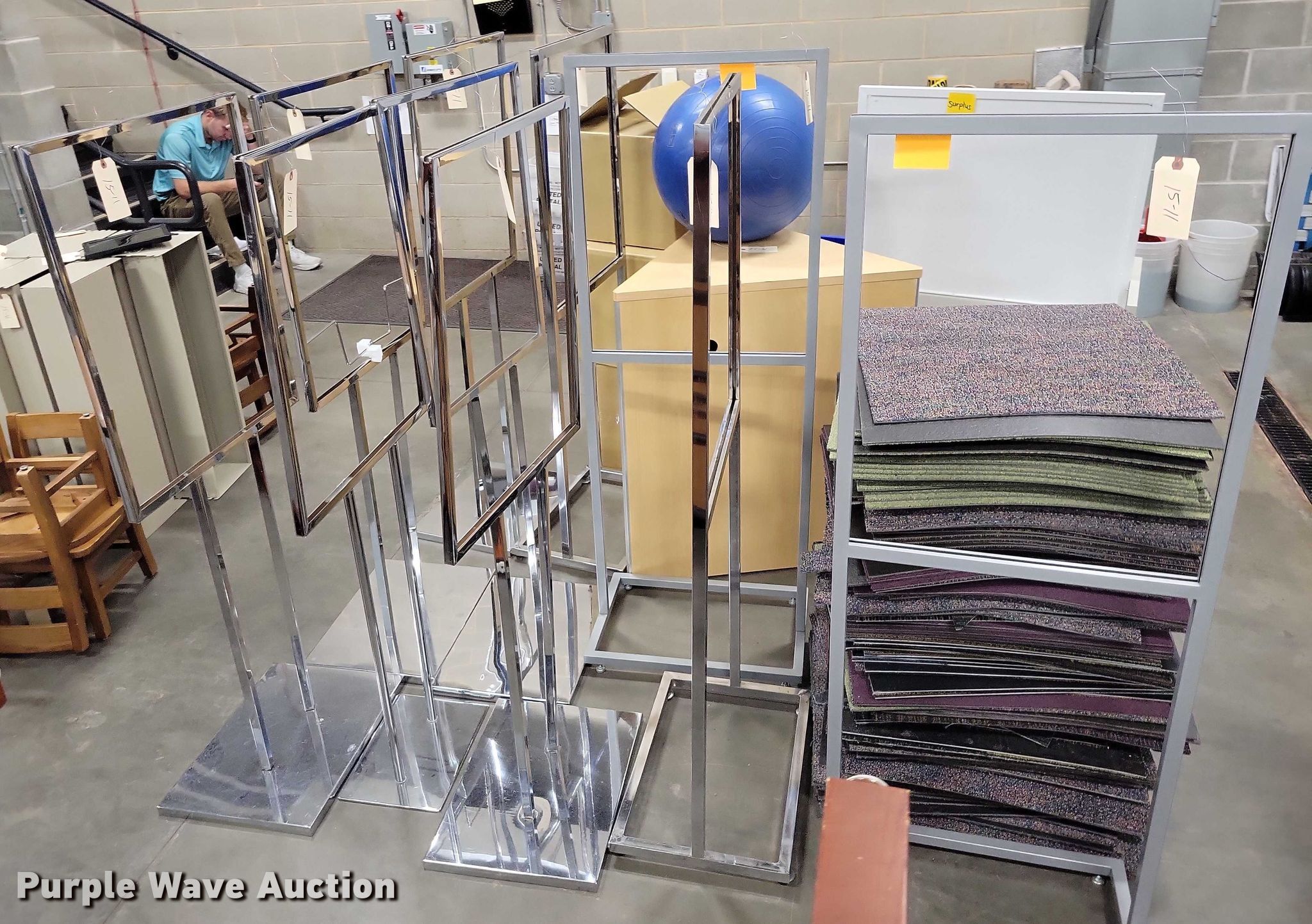 Purple Wave is selling a used Furniture in South Dakota. This item is a Furniture with the following: Unit #: 15-9, 15-14, 15-11, 15-12, 15-15, 15-13, Carpet squares, Rolling marker board, Recycle bin, Ball, Wood triangle display stand, (3) step stools, (10) Metal poster holders