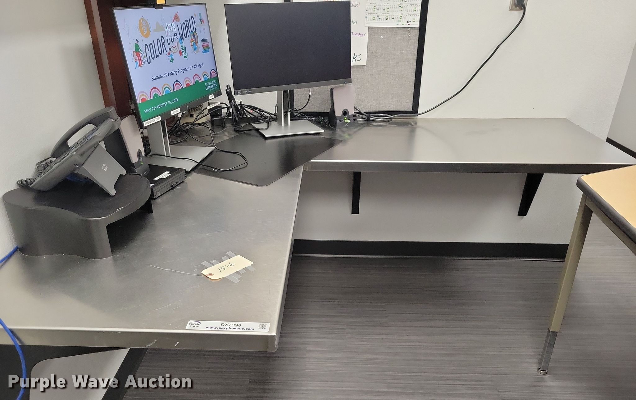 Purple Wave is selling a used Office Supplies and Equip. in South Dakota. This item is a Wall mounted table with the following: Stainless steel table, 64" x 72", L shaped, Contents not included, Unit #: 15-6