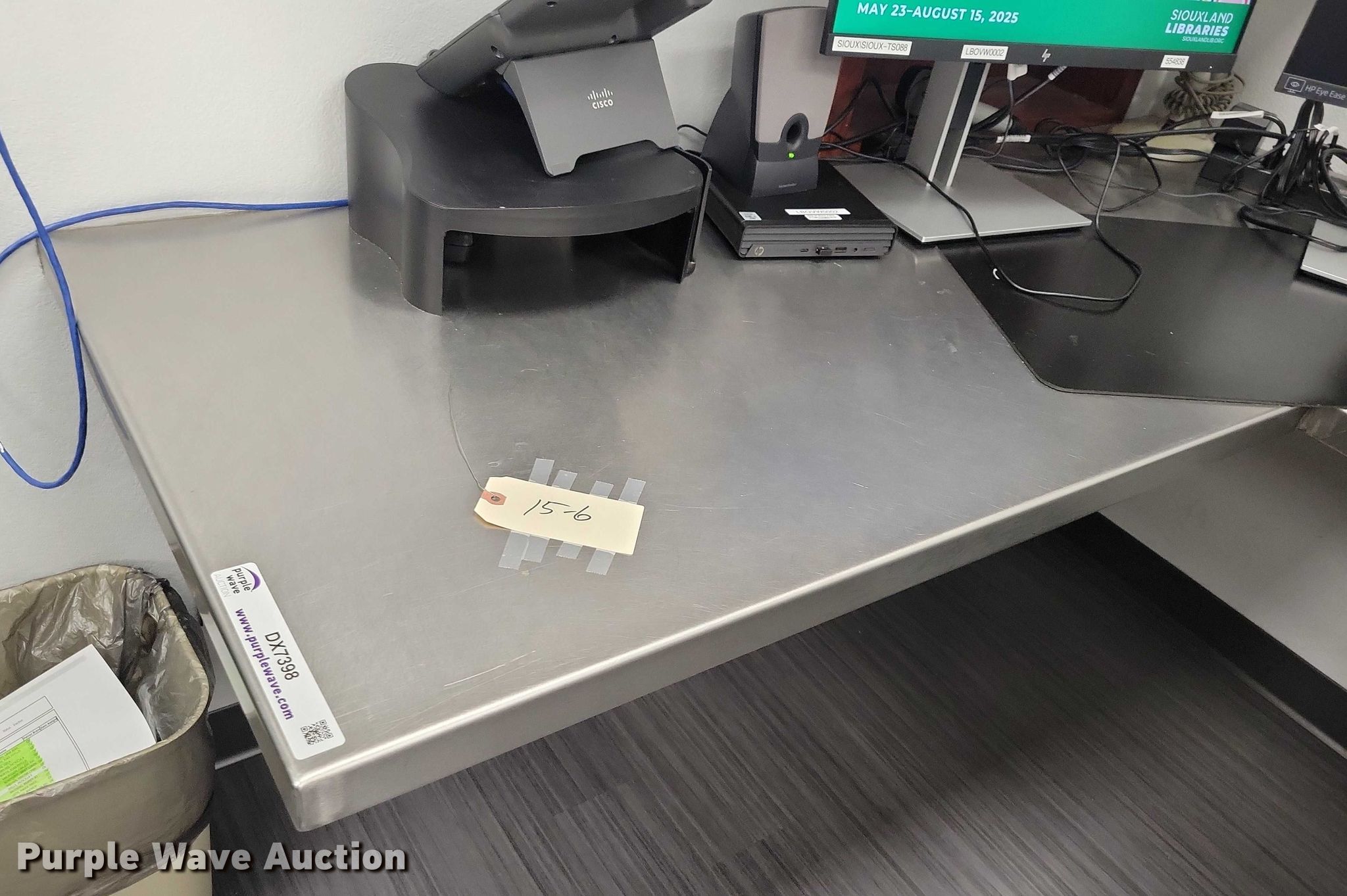 Wall mounted table. Stainless steel table, 64" x 72", L shaped, Contents not included, Unit #: 15-6. City of Sioux Falls. Sioux Falls, SD 57104