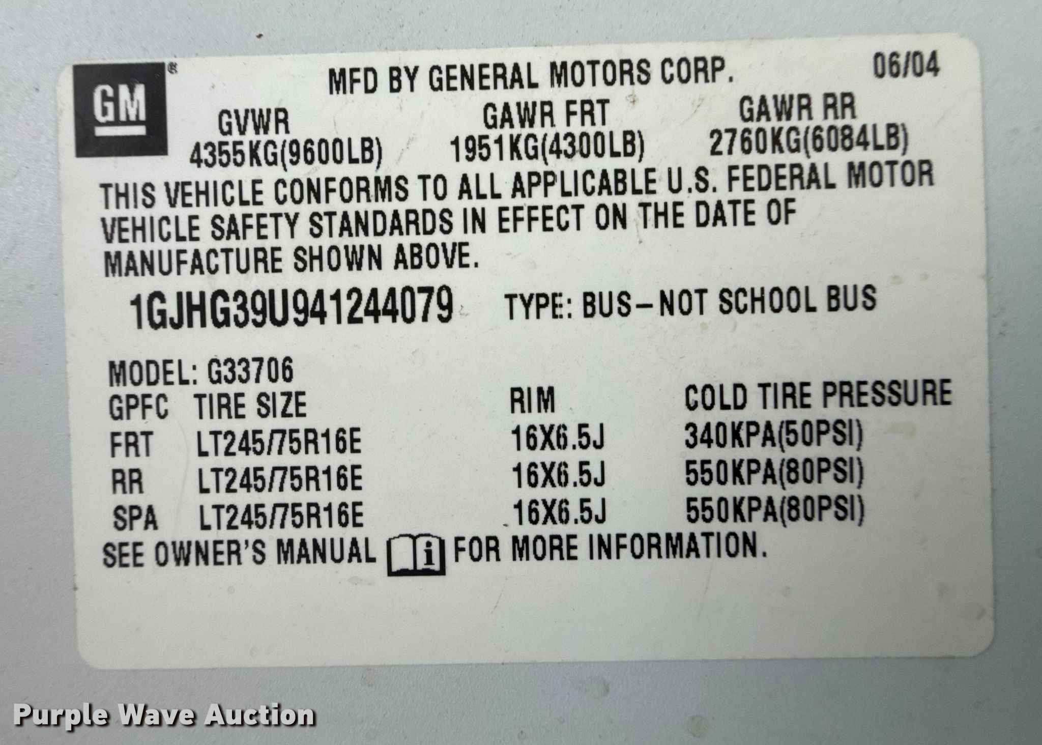 Purple Wave is selling a used Passenger Vehicle in Kansas. This item is a 2004 GMC Savana G3500 van with the following: Miles: 225,269 on odometer, VIN: 1GJHG39U941244079