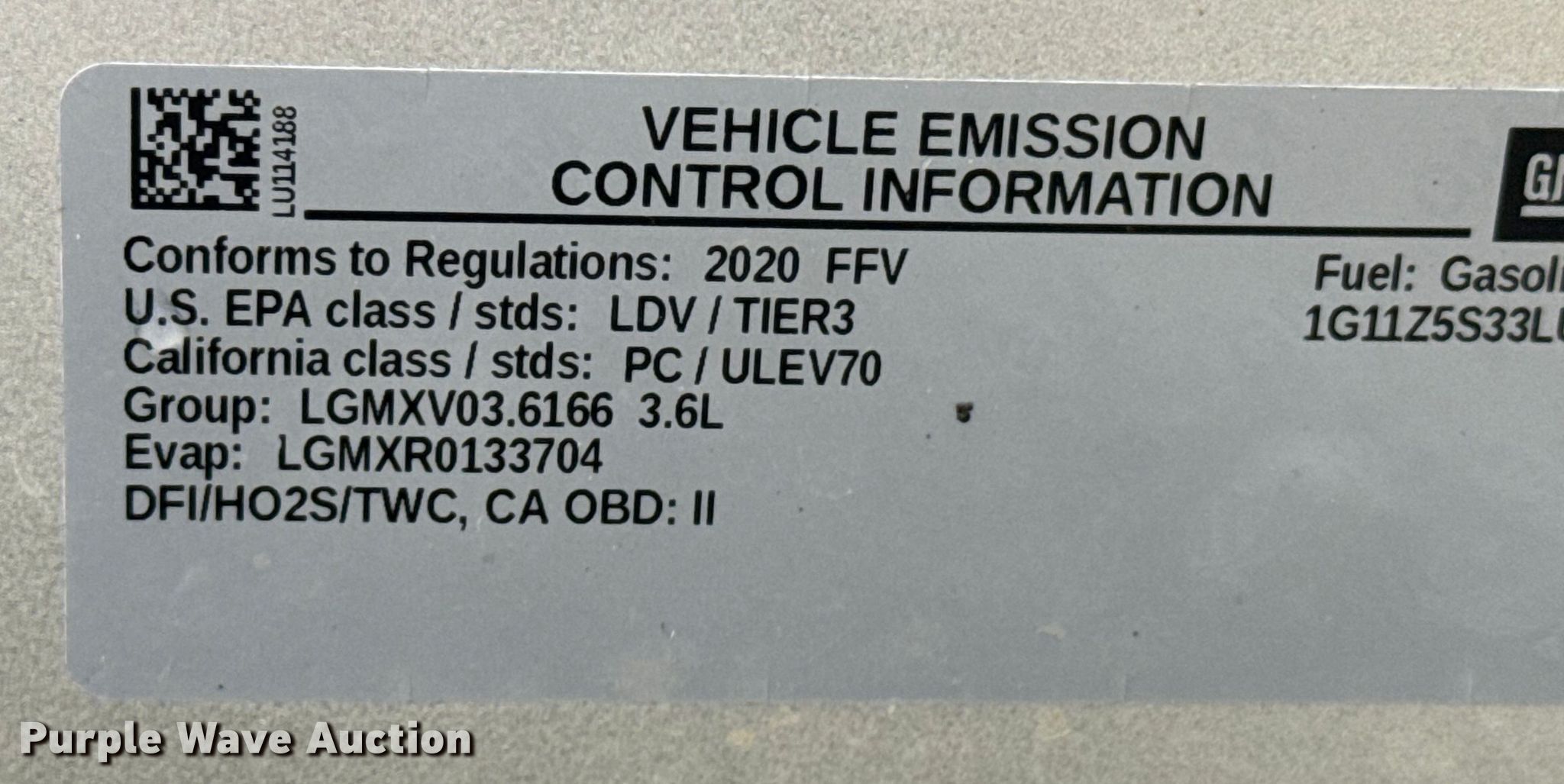 Purple Wave is selling a used Passenger Vehicle in Kansas. This item is a 2020 Chevrolet Impala LT with the following: Miles: 116,403 on odometer, VIN: 1G11Z5S33LU114188
