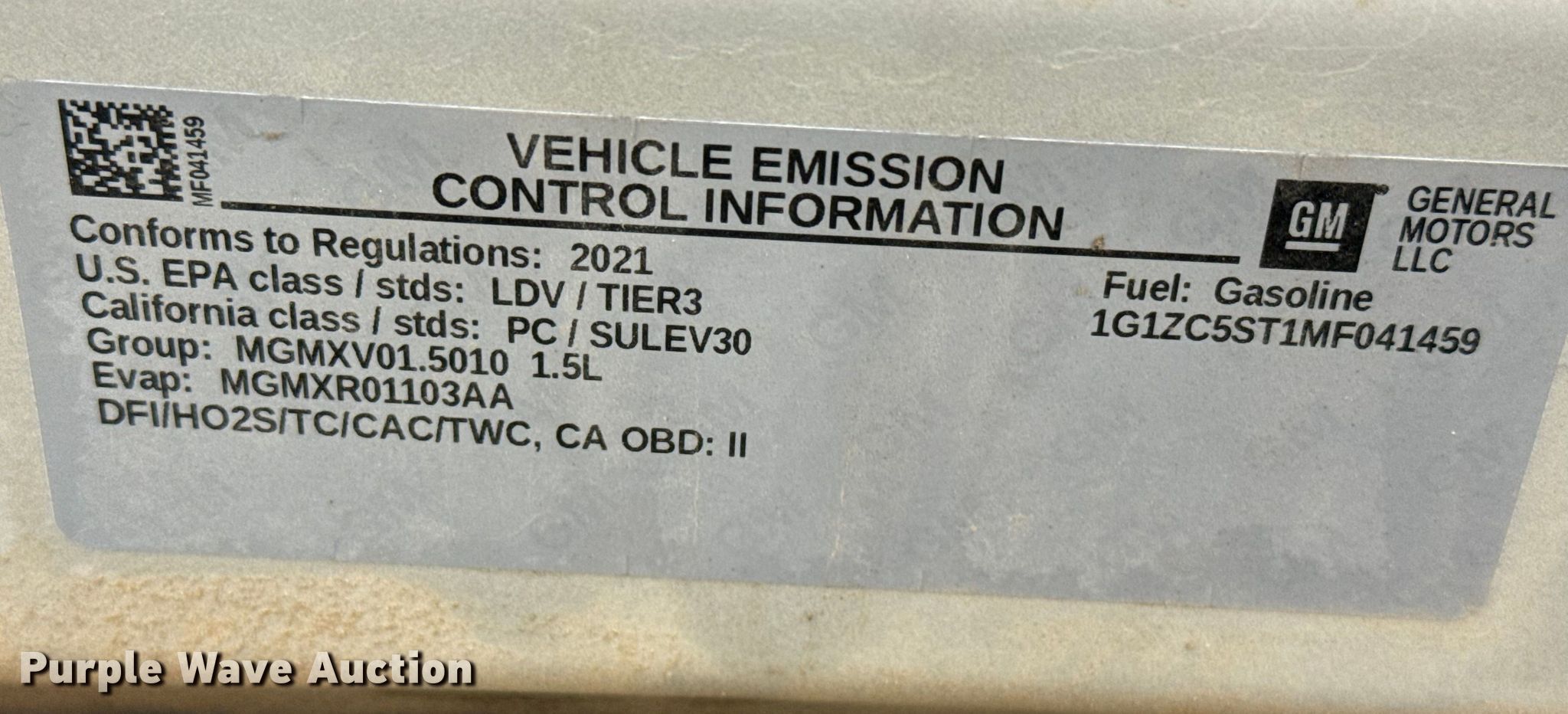 2021 Chevrolet Malibu | Tuesday September 30 Government Auction
