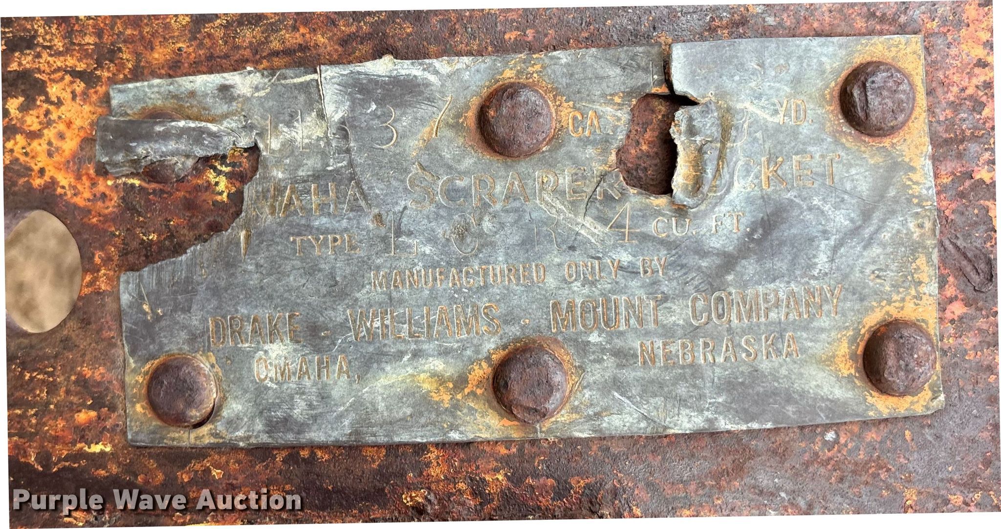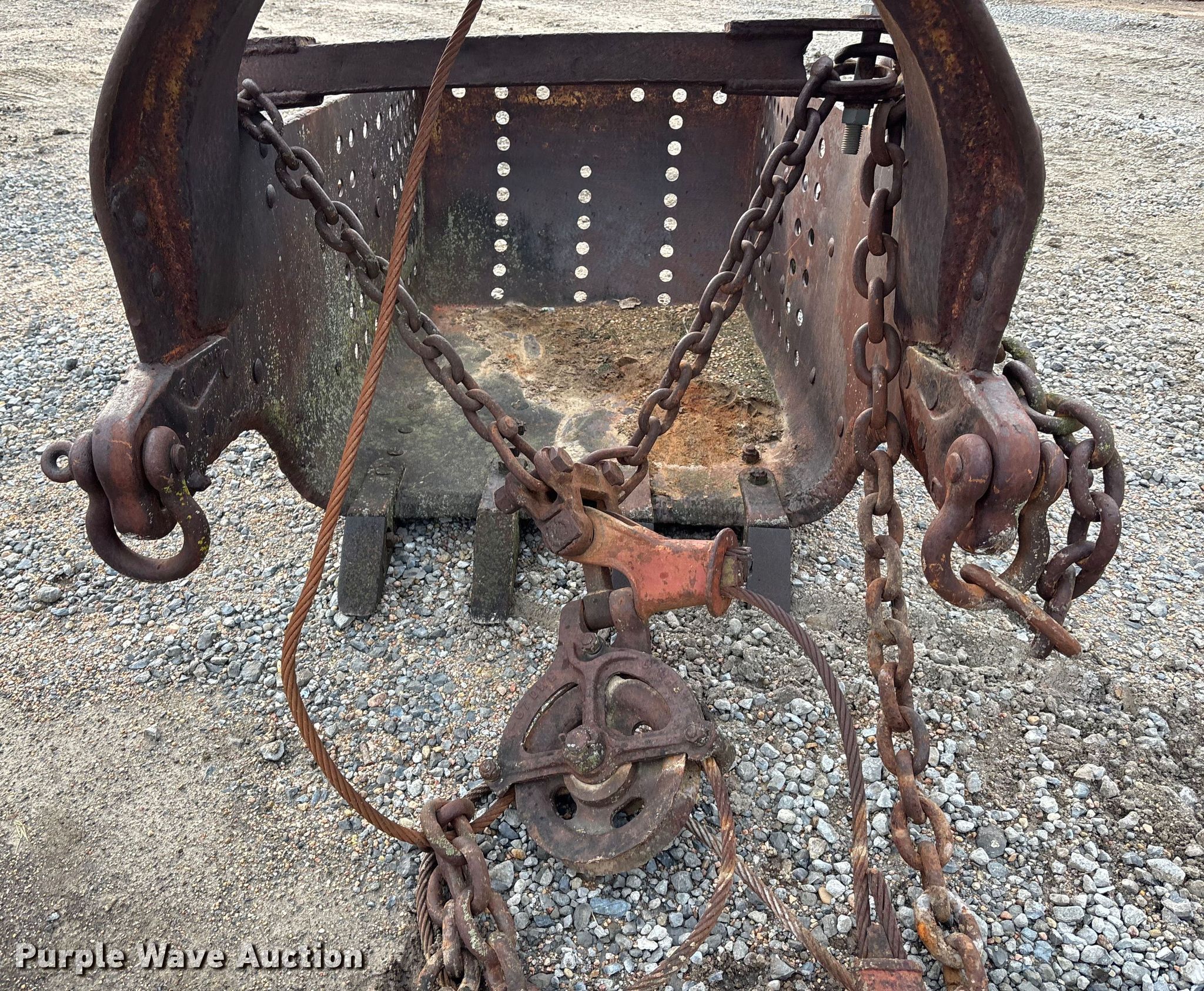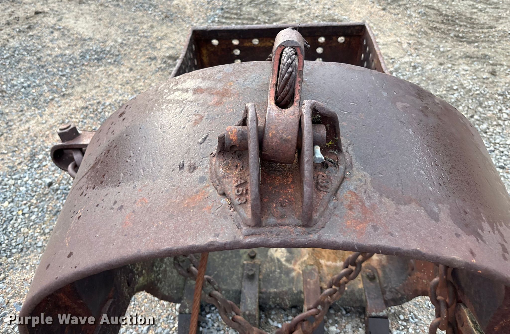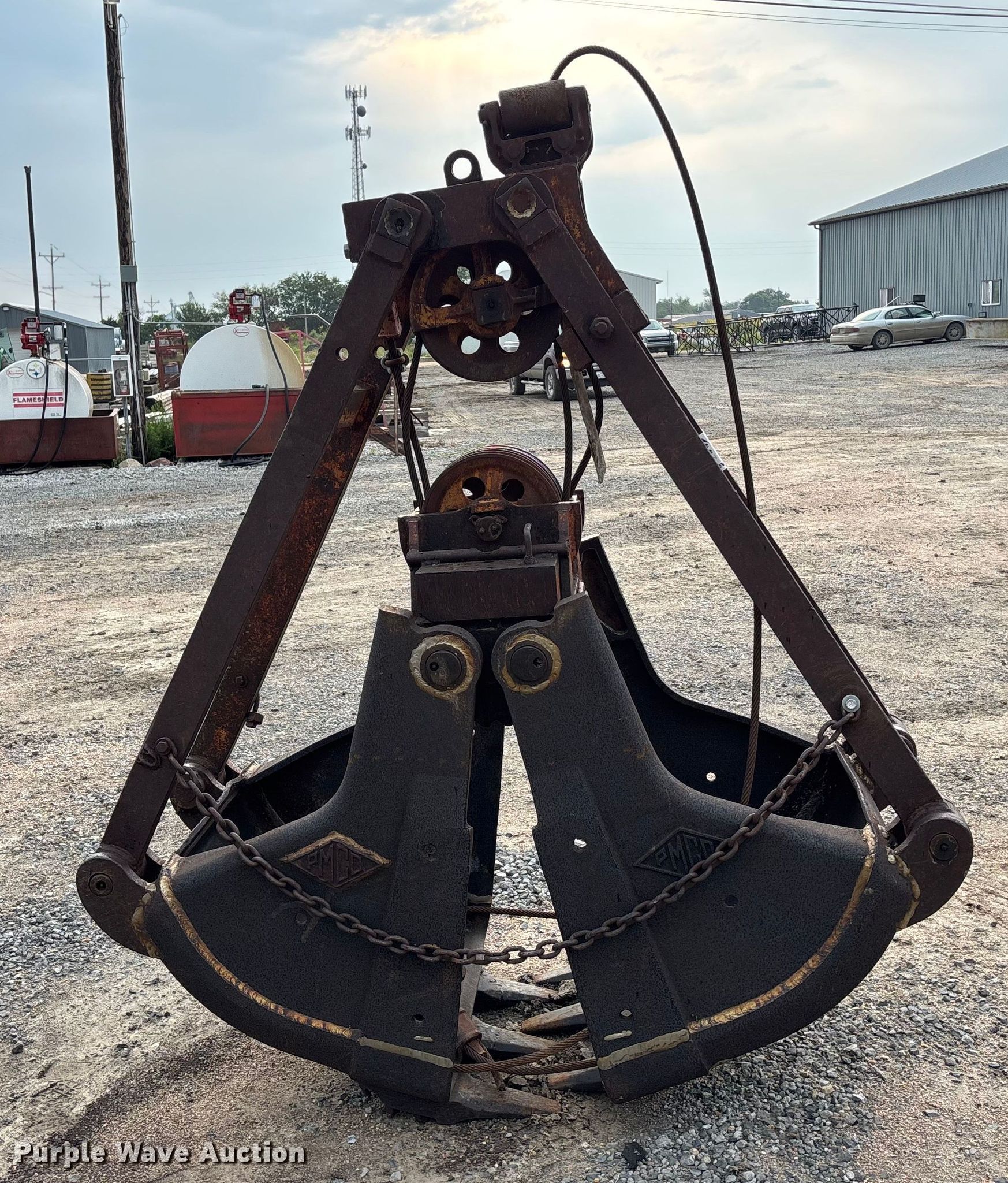 Purple Wave is selling a used Crane Attach. in Nebraska. This item is a (2) crane buckets with the following: Pettibone Muliken 4EA clamshell bucket, Serial: E1205, Width 30", Teeth: 6, Pins, Drake Williams Mount Company drag line bucket, Serial: 11637, Capacity: 3 yd