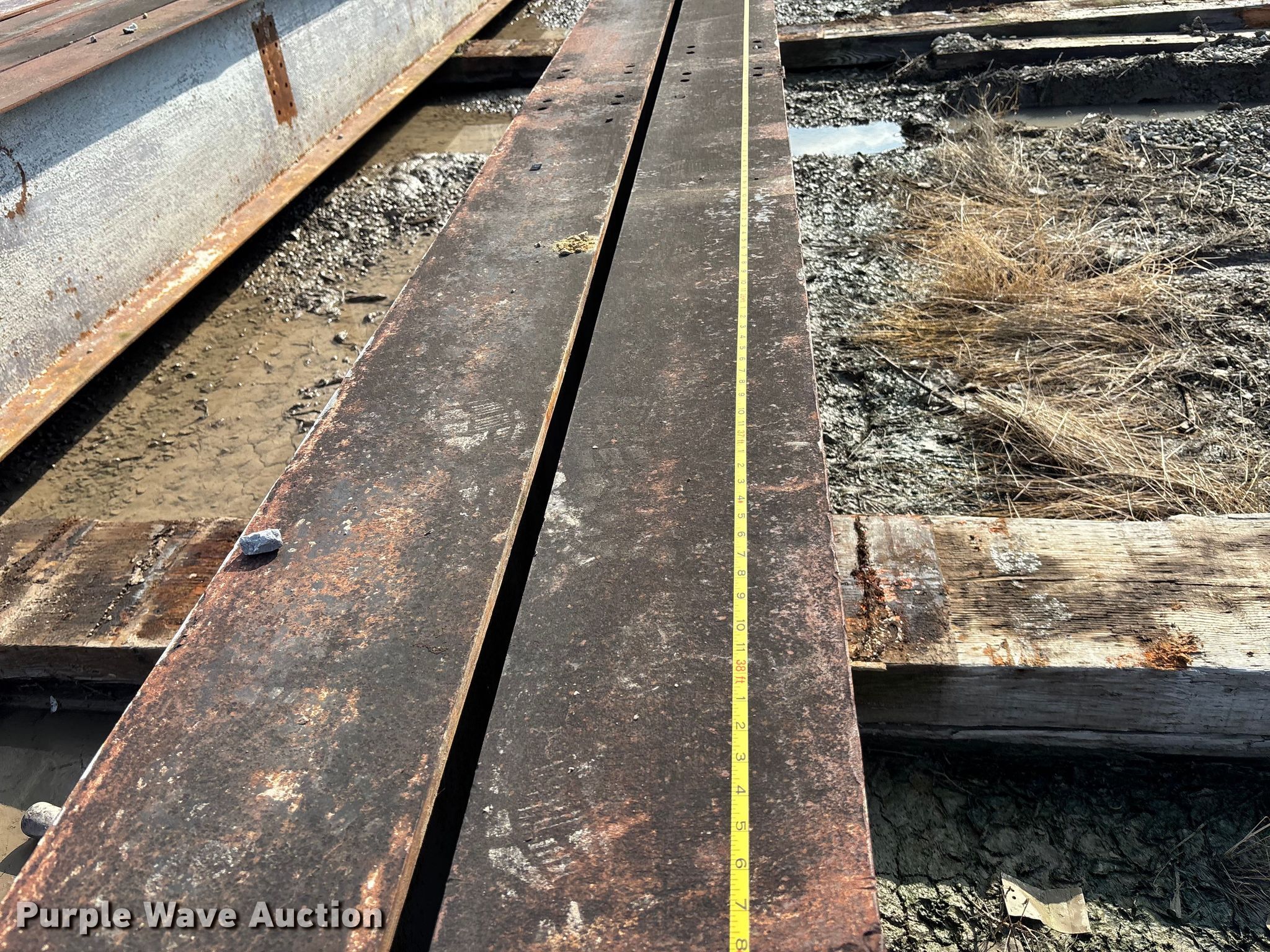 Purple Wave is selling a used Building Materials in Nebraska. This item is a (2) I-beams with the following: Dimensions: 40' L x 10" W x 28" H