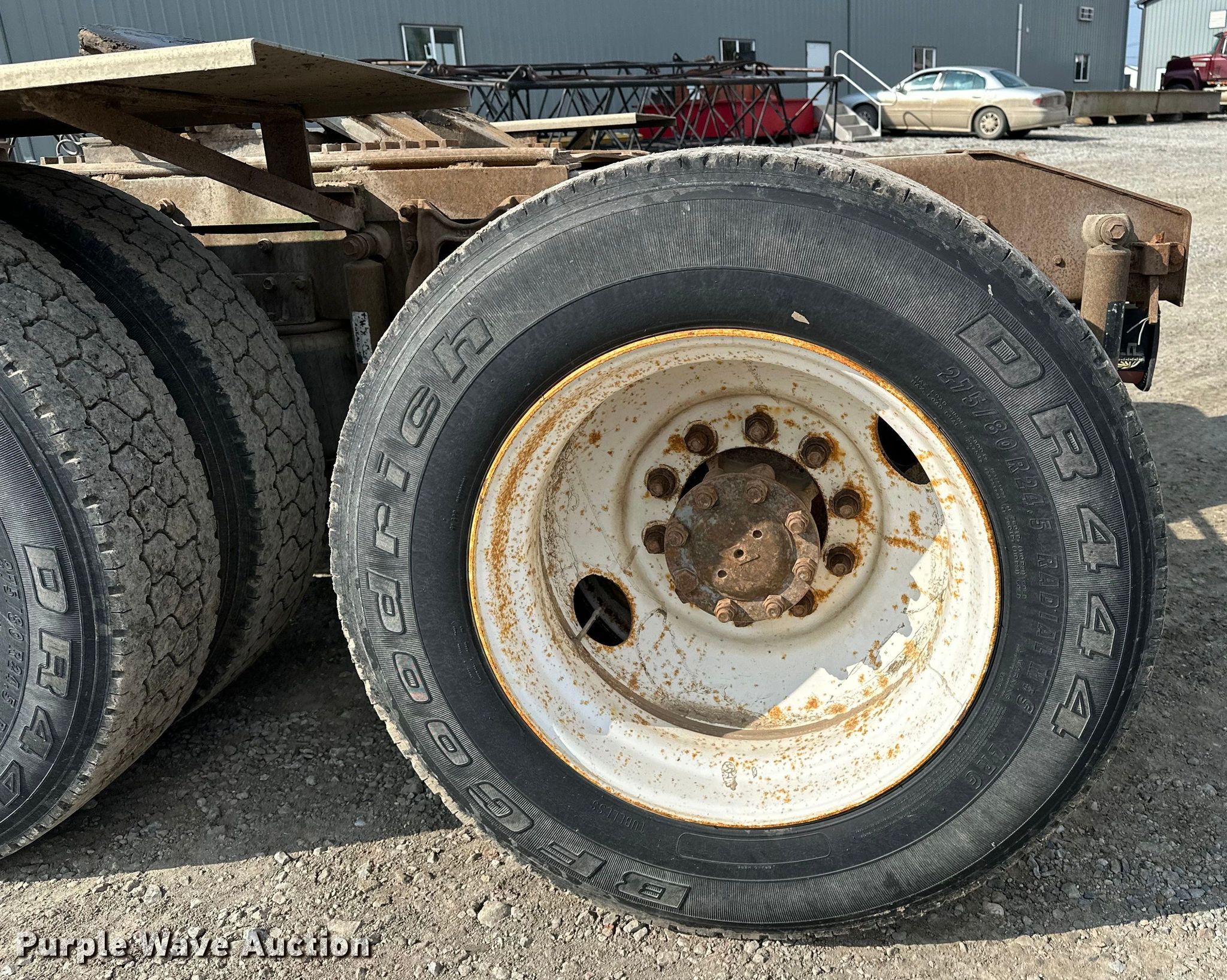 1996 International 9200 semi truck. Miles: 756,840 on odometer, VIN: 2HSFMAHRXTC050299, Unit #: 104. Engine Cummins, Displacement: 10.8L, Cylinders: 6, Fuel type: Diesel. Transmission Eaton Fuller, Manual, Speed: 13. Chassis Axles: Tandem, Differential lock: Inter-axle, Suspension: Air Dump valves, Brakes: Air, GVWR: 52,000 lbs FAWR: 12,000 lbs, IAWR: 20,000 lbs, RAWR: 20,000 lbs, Wheelbase: 183". Interior AC, Heat, Cruise control. Features Deck plate: Aluminum, Fifth wheel type: Air operated, Sliding, Fuel tank: Single. Tires Front: 285/75R24.5, Rear: 275/80R24.5. Notes Dash warning indicator: ABS, Windshield chipped or cracked, Possible engine issues, oil leak. Nebraska title. Title distribution may be delayed up to 14 days from verification of funds. Saline County Offices. Friend, NE 68359
