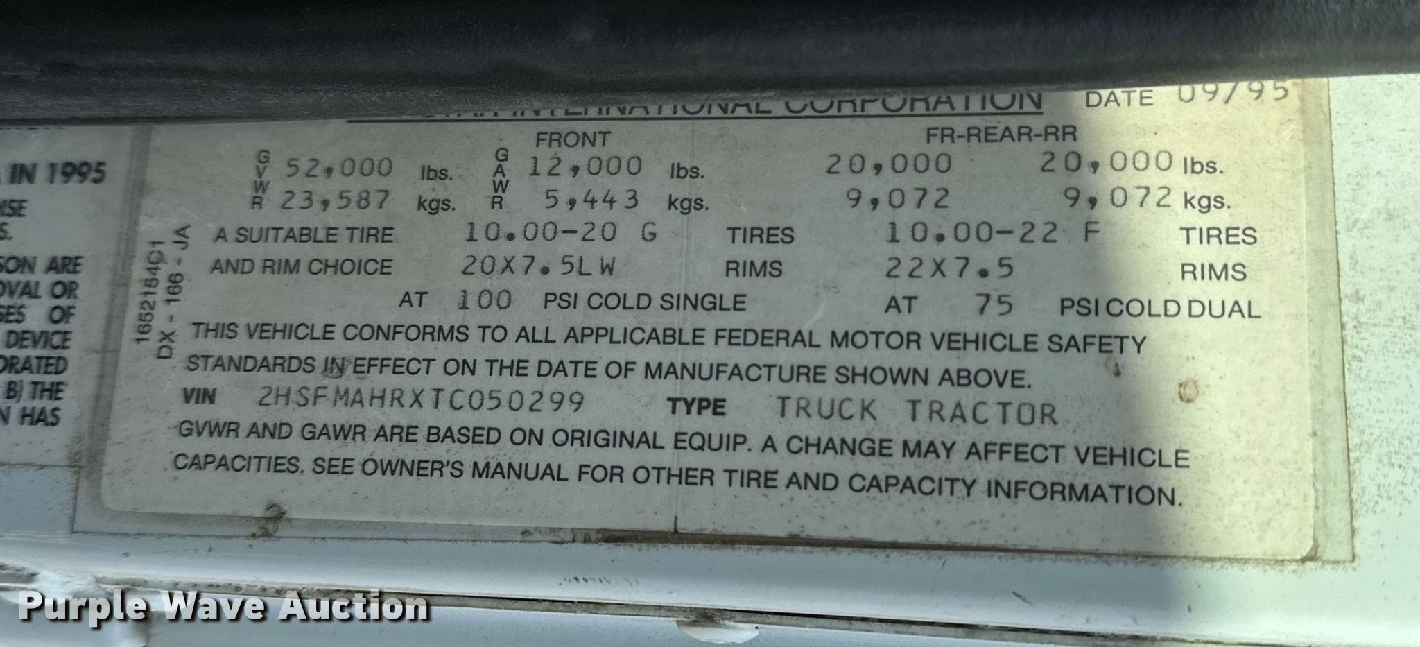 Purple Wave is selling a used Truck Tractor in Nebraska. This item is a 1996 International 9200 semi truck with the following: Miles: 756,840 on odometer, VIN: 2HSFMAHRXTC050299, Unit #: 104