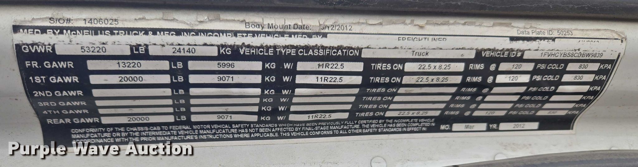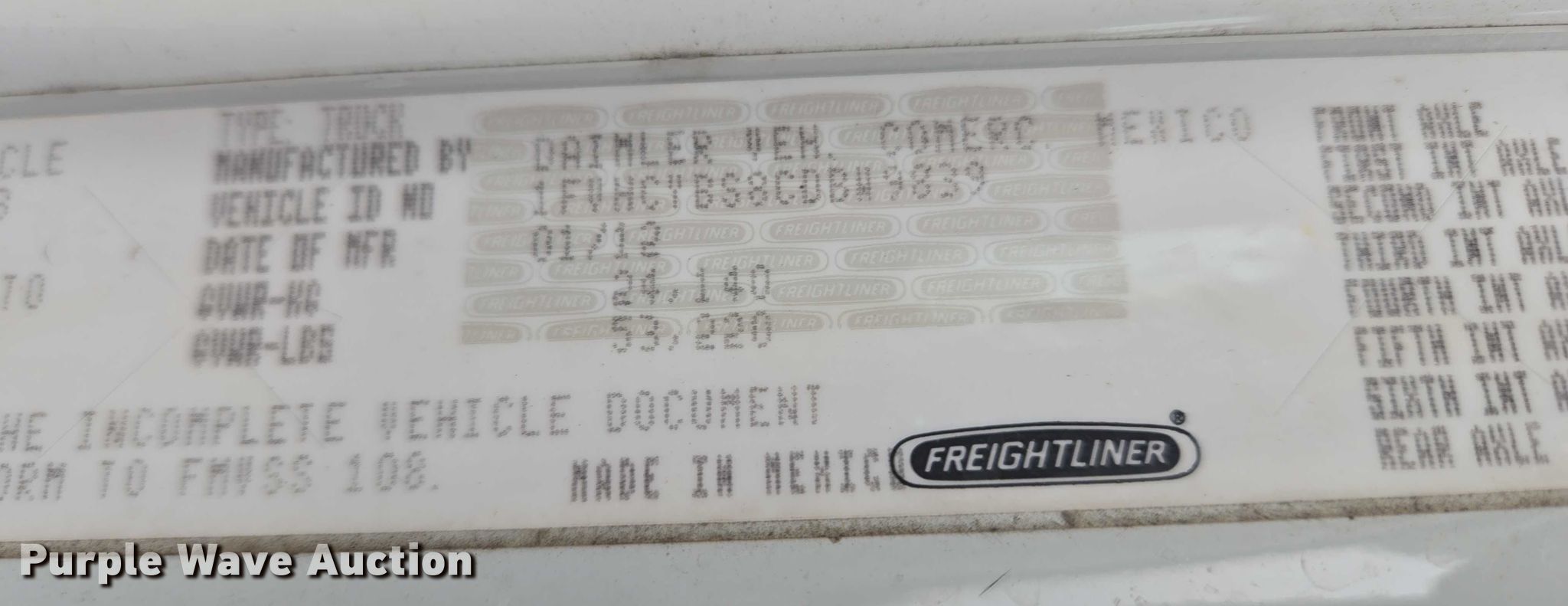 - VIN: 1FVHCYBS8CDBW9839