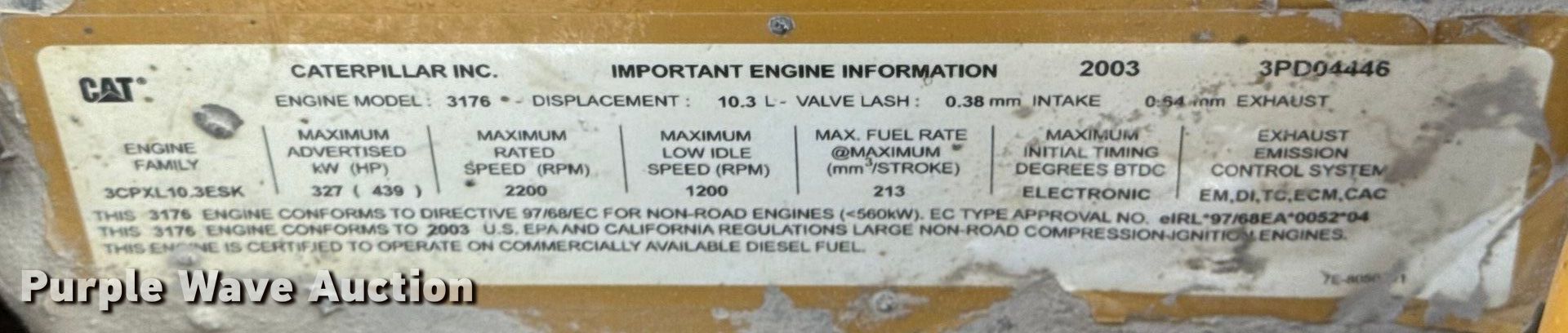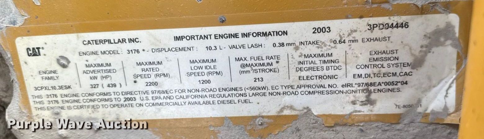Caterpillar 140H motor grader. Hours: 19,150 on meter, Serial: CAT0140HJAPM00726. Engine Caterpillar 3176, Serial: 3PD04446, Displacement: 10.3L, Cylinders: 6, Fuel type: Diesel, HP: 185. Transmission Powershift, 8F - 6R. Chassis Differential lock. Operators station Enclosed cab, AC, Heat, Hydraulic control valves: 9. Features Moldboard: Tip control, Side shift, Moldboard total width: 192", Front-mounted lift group Make: Caterpillar. Tires Size: 14.00R24, Brand: Michelin. Davis County Highway. Bloomfield, IA 52537