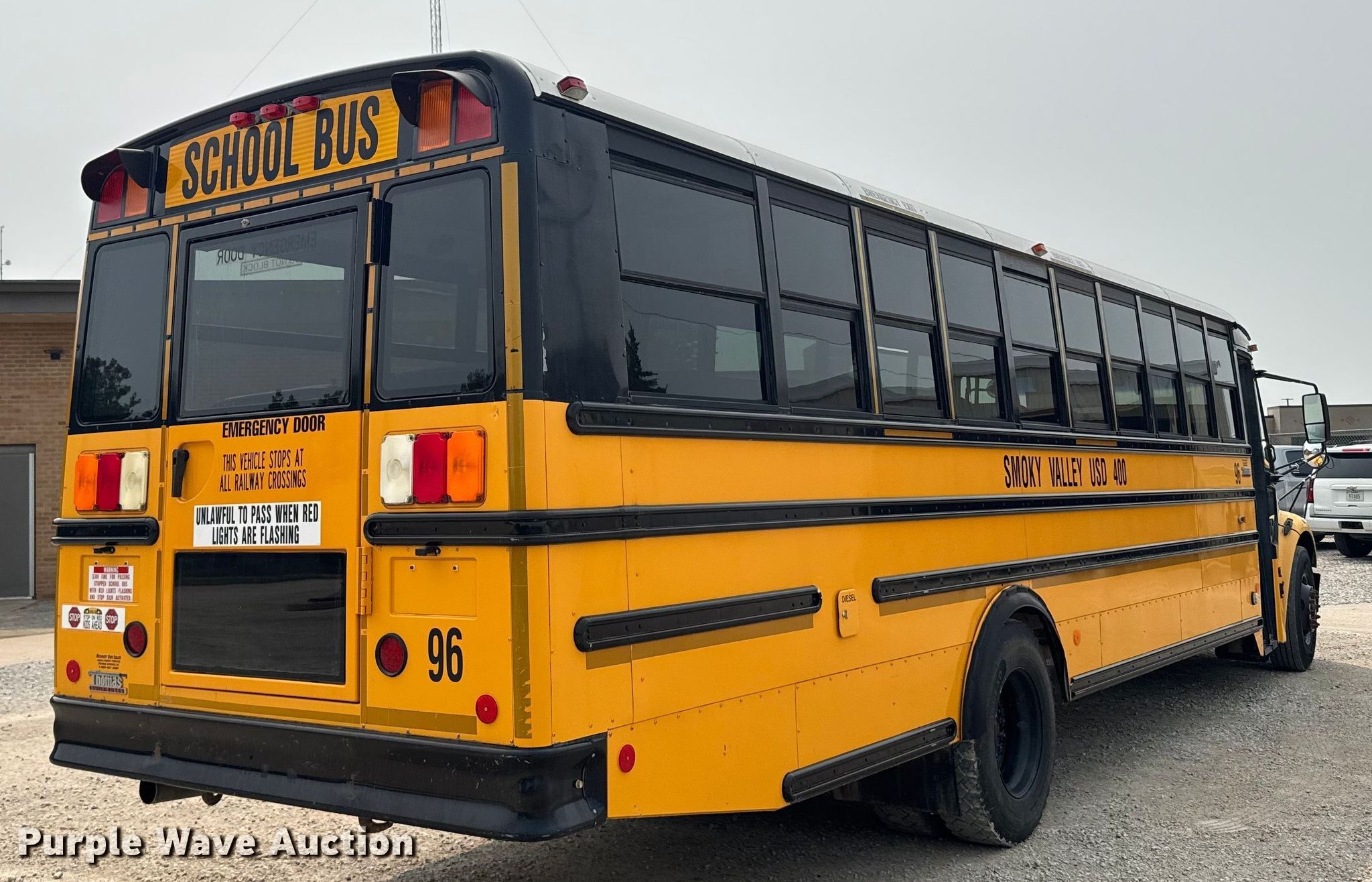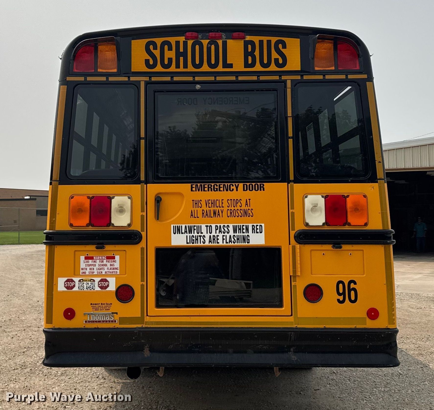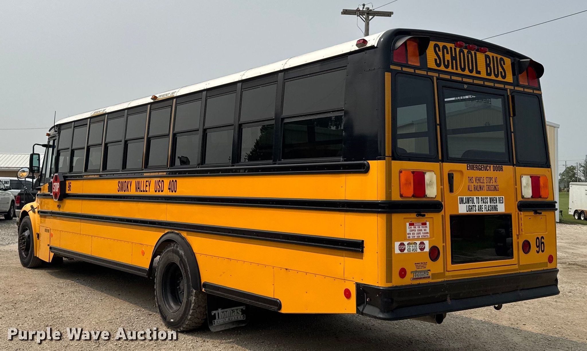 Purple Wave is selling a used Bus in Kansas. This item is a 2008 Thomas Built B2 school bus with the following: Miles: 157,872 on odometer, VIN: 4UZABRCS98CY69489