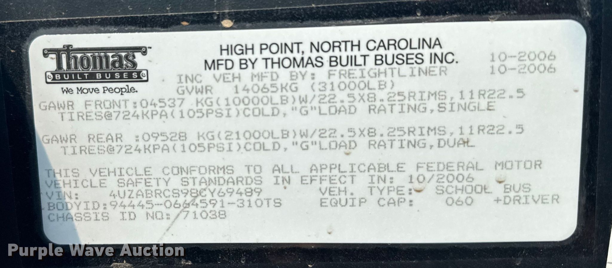 Take a look at this used 2008 Thomas Built B2 school bus being sold on September 30th, 2025 in the SOLD! September 30 Government Auction made by Thomas Built. Take a look at all of the item information below or take a look at similar auctions for Transit Vehicles.