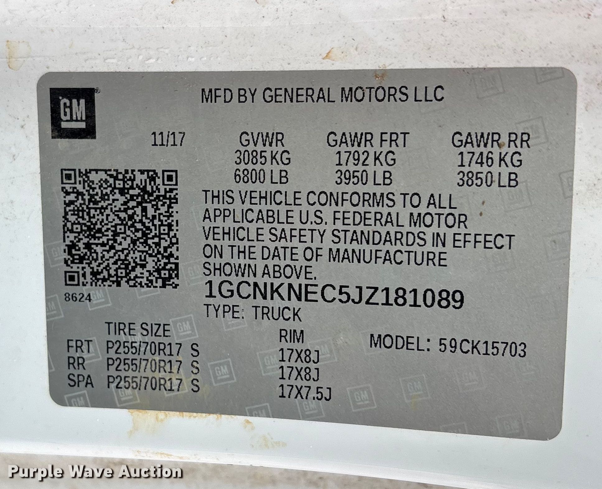 2018 Chevrolet Silverado 1500 pickup truck | Tuesday September 30 Government Auction