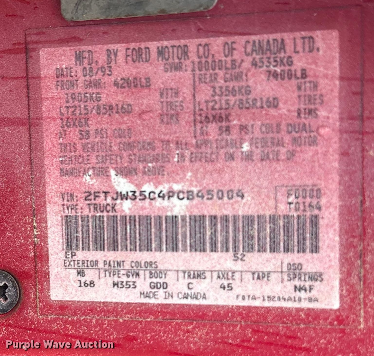 - VIN: 2FTJW35C4PCB45004