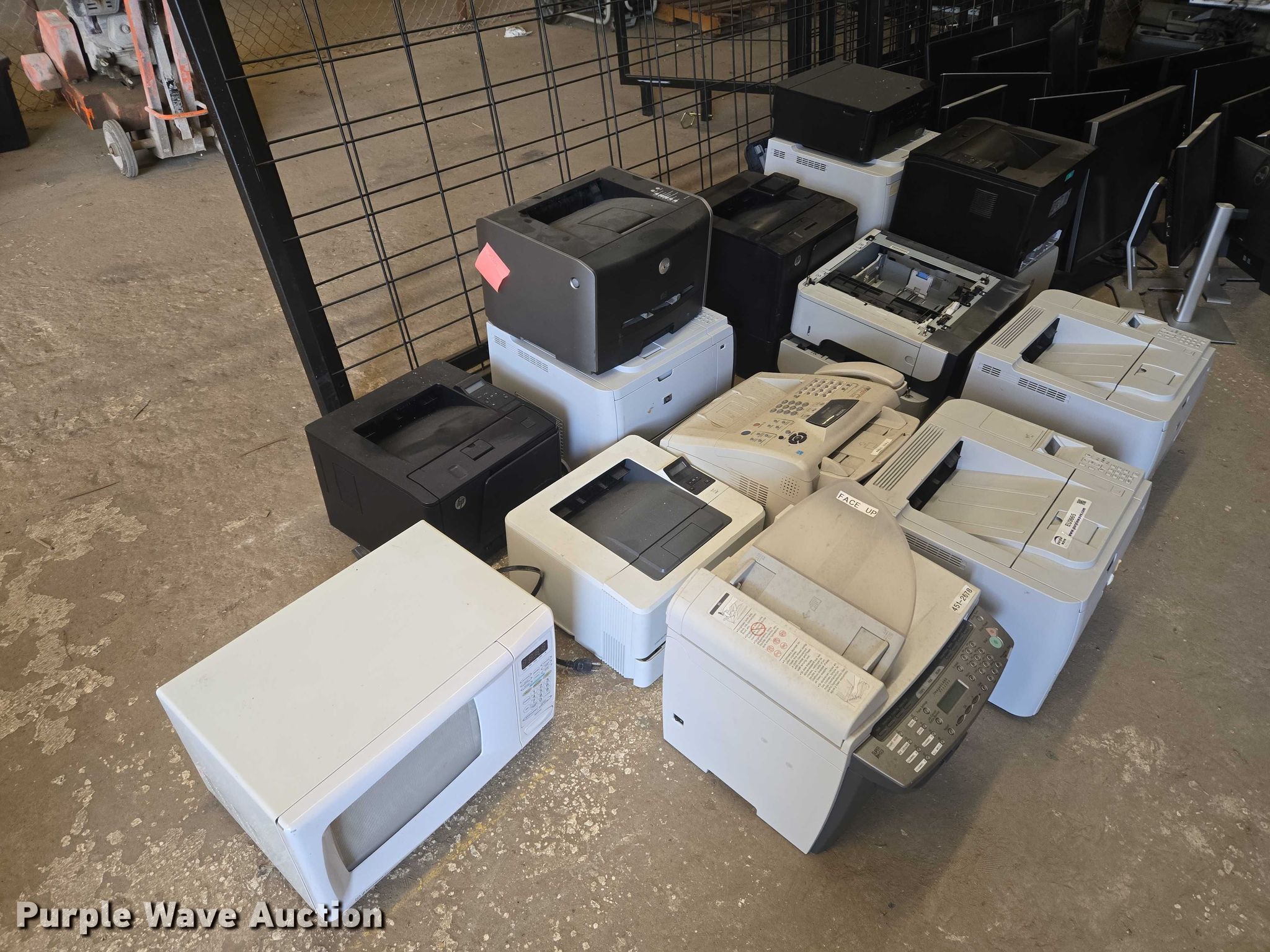 Purple Wave is selling a used Electronics in Oklahoma. This item is a Electronics with the following: (14) printers, Microwave