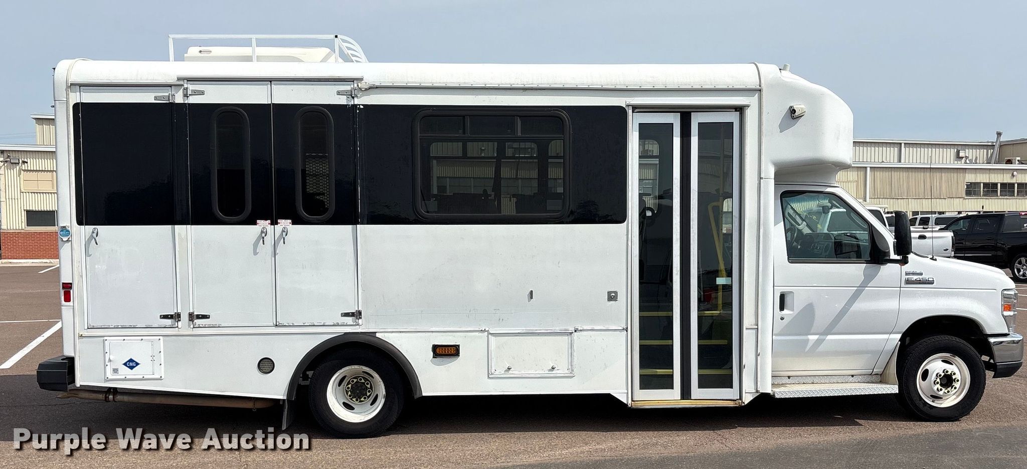 2014 Ford E450 Super duty shuttle bus. Miles: 197,652 on odometer, VIN: 1FDXE4FS5EDB10263, Unit #: 5-1472. Engine Displacement: 6.8L, Cylinders: 10, Fuel type: CNG. Transmission Automatic. Chassis Axles: Single, Suspension: Spring, Brakes: Hydraulic, GVWR: 14,500 lbs, Wheelbase: 158". Interior AC, Heat, Cruise control, Backup camera, Electric passenger sliding door, Passengers: 14, Wheelchair lift. Tires Size: 225/75R16, Brand: Firestone. Notes Jump start required during on-site data collection. Oklahoma title. Title distribution may be delayed up to 14 days from verification of funds. City of Norman - Open inspection September 29, October 3 and 10. Norman, OK 73069
