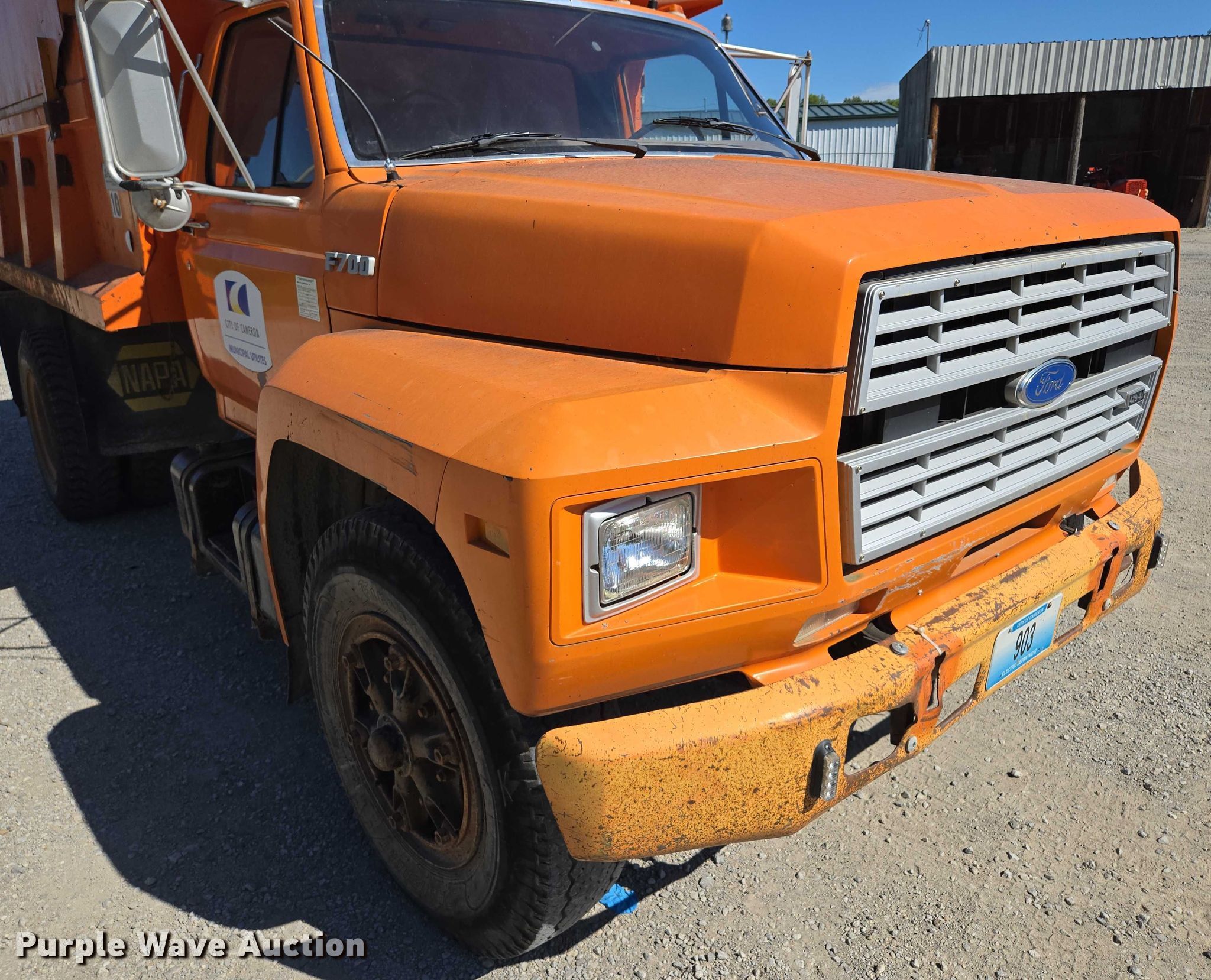 Purple Wave is selling a used Construction Dump Truck in Missouri. This item is a 1987 Ford F700 dump truck with the following: Miles: 52,225 on odometer, VIN: 1FDPF70K9HVA20457