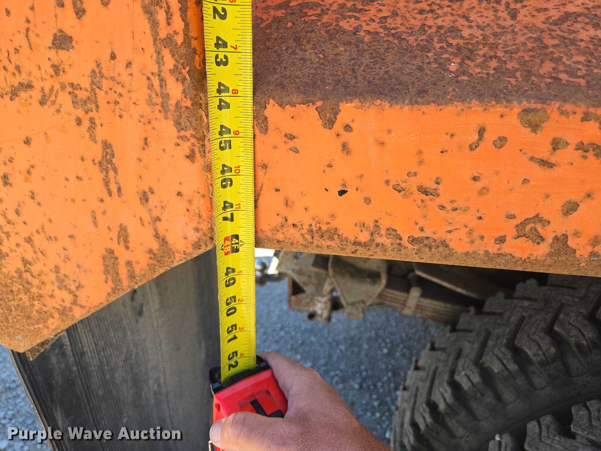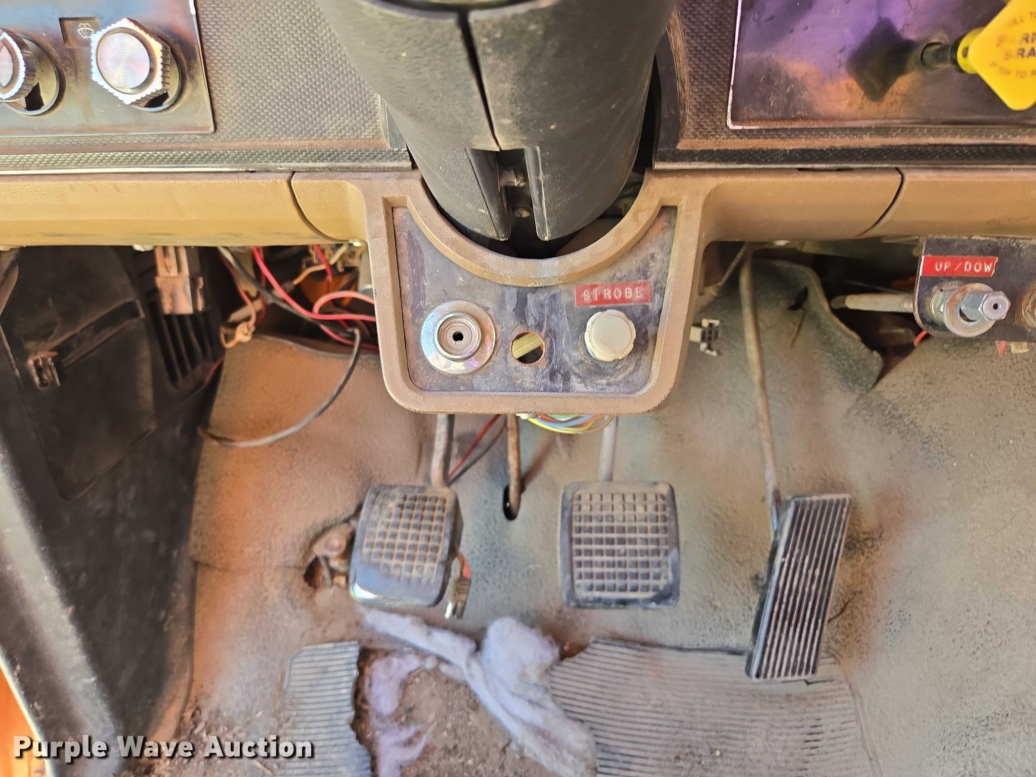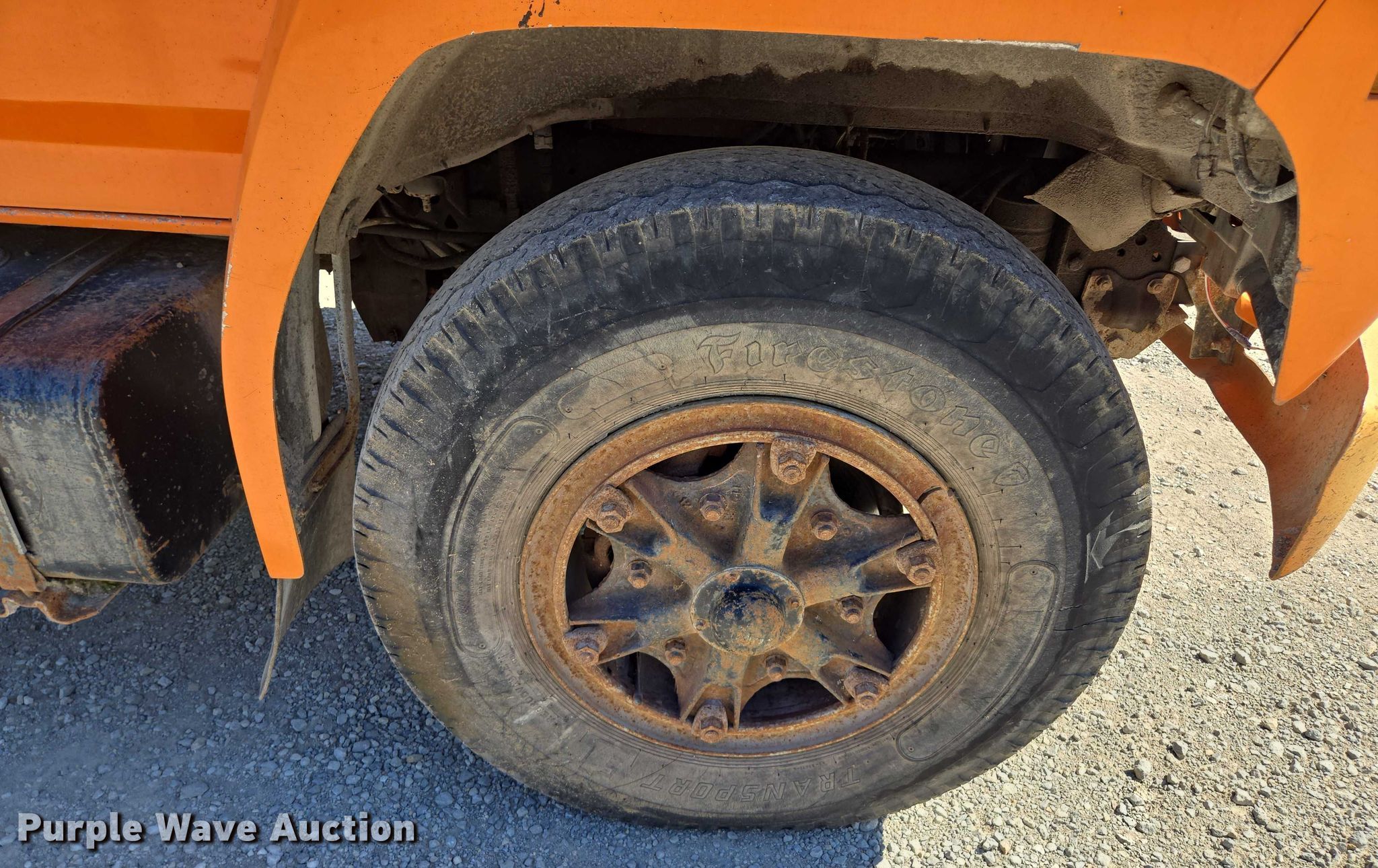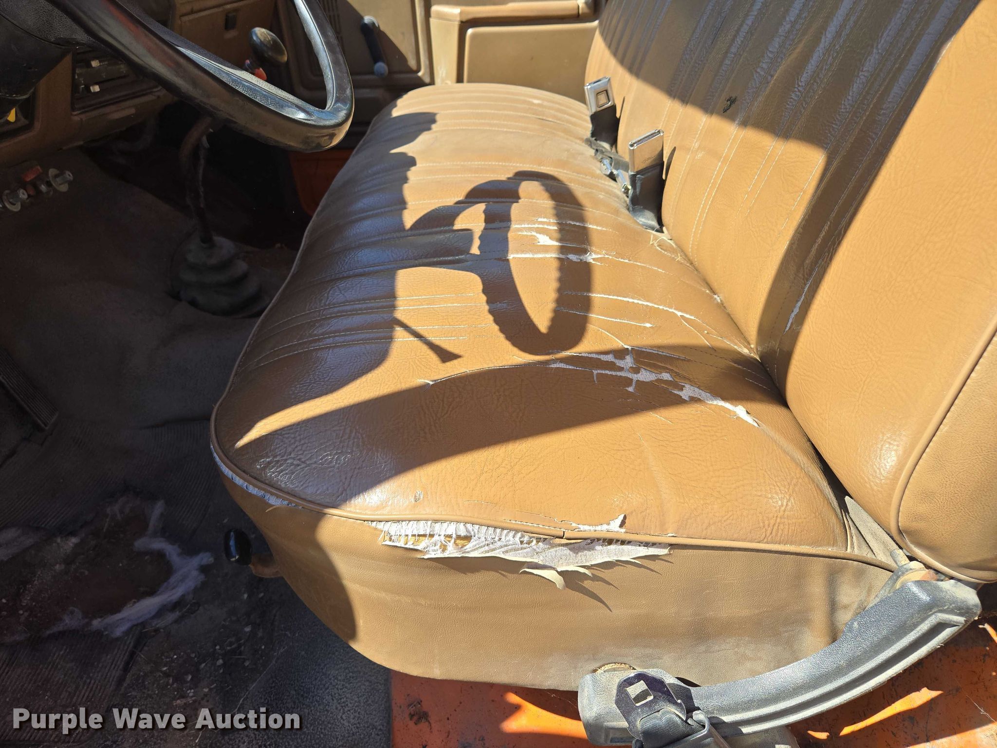 1987 Ford F700 dump truck. Miles: 52,225 on odometer, VIN: 1FDPF70K9HVA20457. Engine Lima, Displacement: 7.0L, Cylinders: 8, Fuel type: Gas. Transmission Manual, Speed: 5. Chassis Axles: Single, Suspension: Spring, Brakes: Hydraulic, PTO, GVWR: 26,500 lbs, Wheelbase: 153". Interior Heat. Features Bed Chip bed, Peabody Galion 402F-2, Serial: 910998, Length: 10', Width: 96", Side height: 48", Bed type: Steel, Ram: Single, End gate: Air operated. Tires Size: 10.00-20. Notes Jump start required during on-site data collection, Clutch issues, may need replaced. Missouri title. Title distribution may be delayed up to 14 days from verification of funds. City of Cameron, MO. Cameron, MO 64429