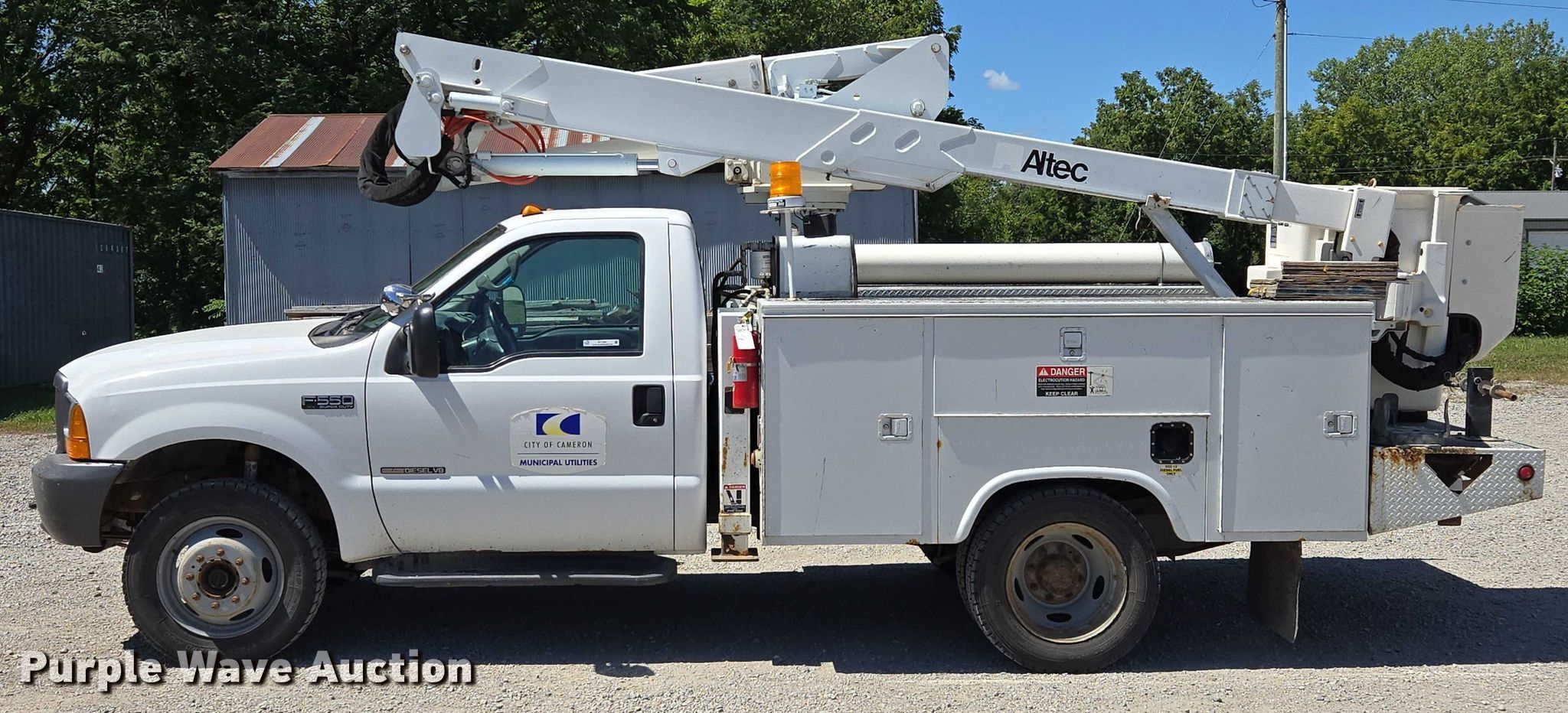 Purple Wave is selling a used Bucket Truck in Missouri. This item is a 2001 Ford F550 Super Duty bucket truck with the following: Miles: 63,571 on odometer, VIN: 1FDAF57F01EA36071