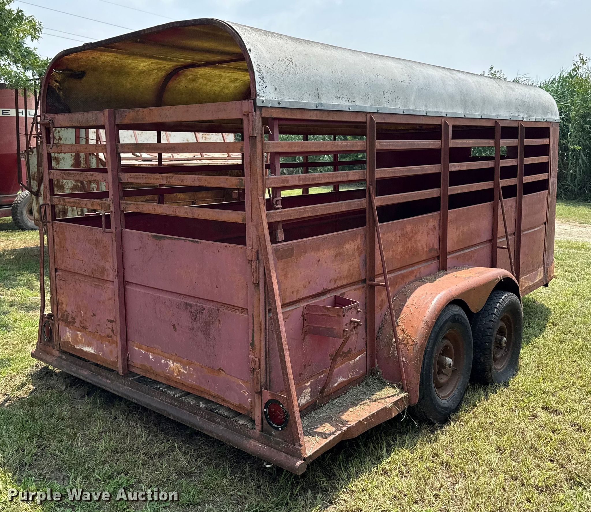 Purple Wave is selling a used Livestock Trailer in Kansas. This item is a Livestock trailer with the following: Overall, Length: 18', Width: 96", Body, Length: 16', Width: 70", Side height: 72"