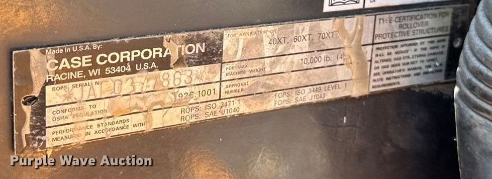 Purple Wave is selling a used Skid Steer Loader in Missouri. This item is a 2002 Case 70XT skid steer loader with the following: Hours: 2,663 on meter, Serial: JAF0371297